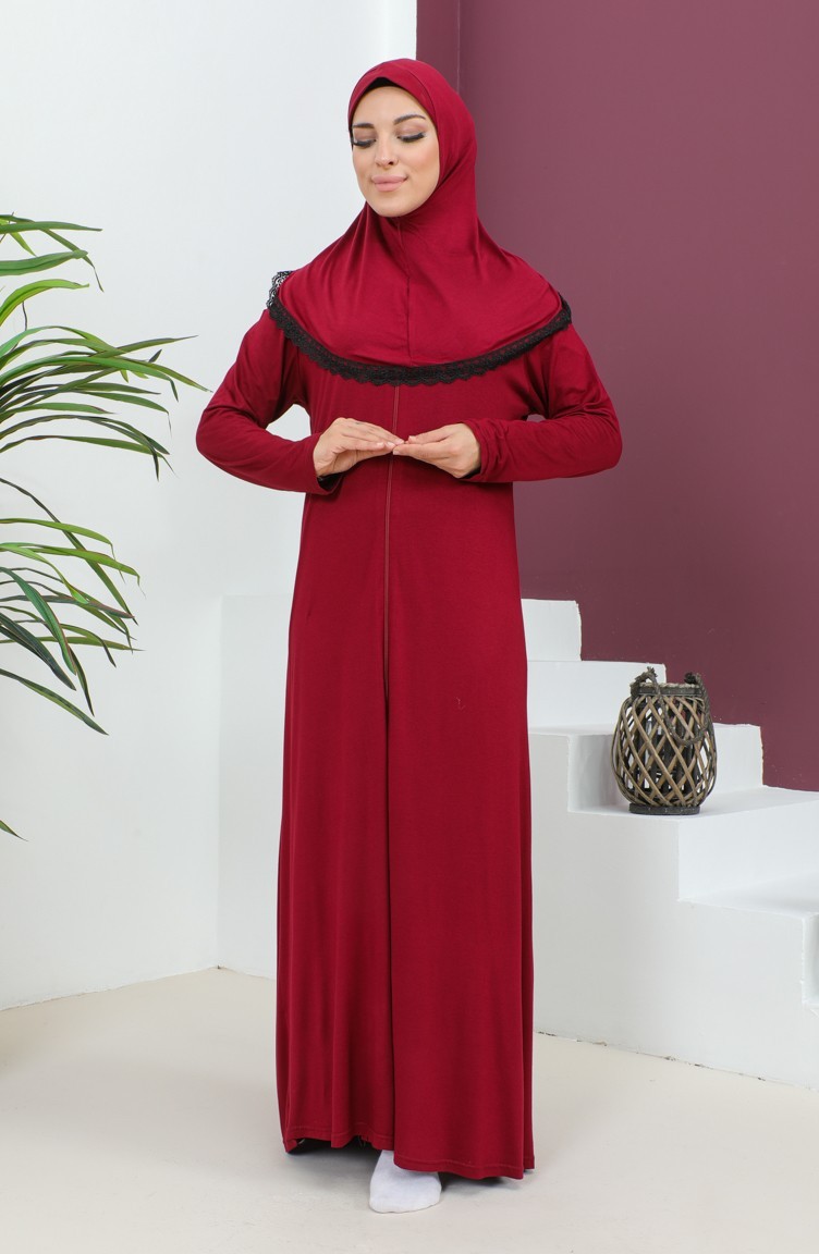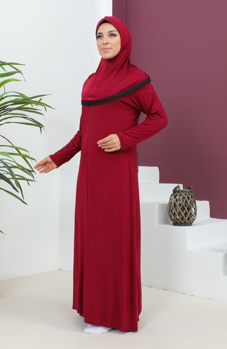 Viscose Gebedsjurk Met Hoofddoek 4485-01 Bourgondië 4485-01
