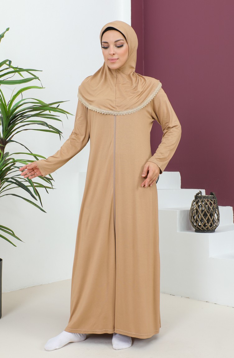 Viscose Gebedsjurk Met Hoofddoek 4485-04 Melkkoffie 4485-04