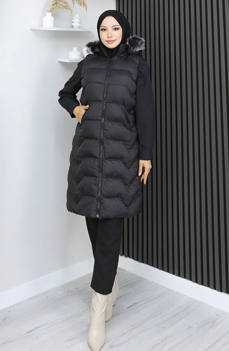 Gewatteerd Vest Met Capuchon En Rits 0180A-01 Zwart 0180-01