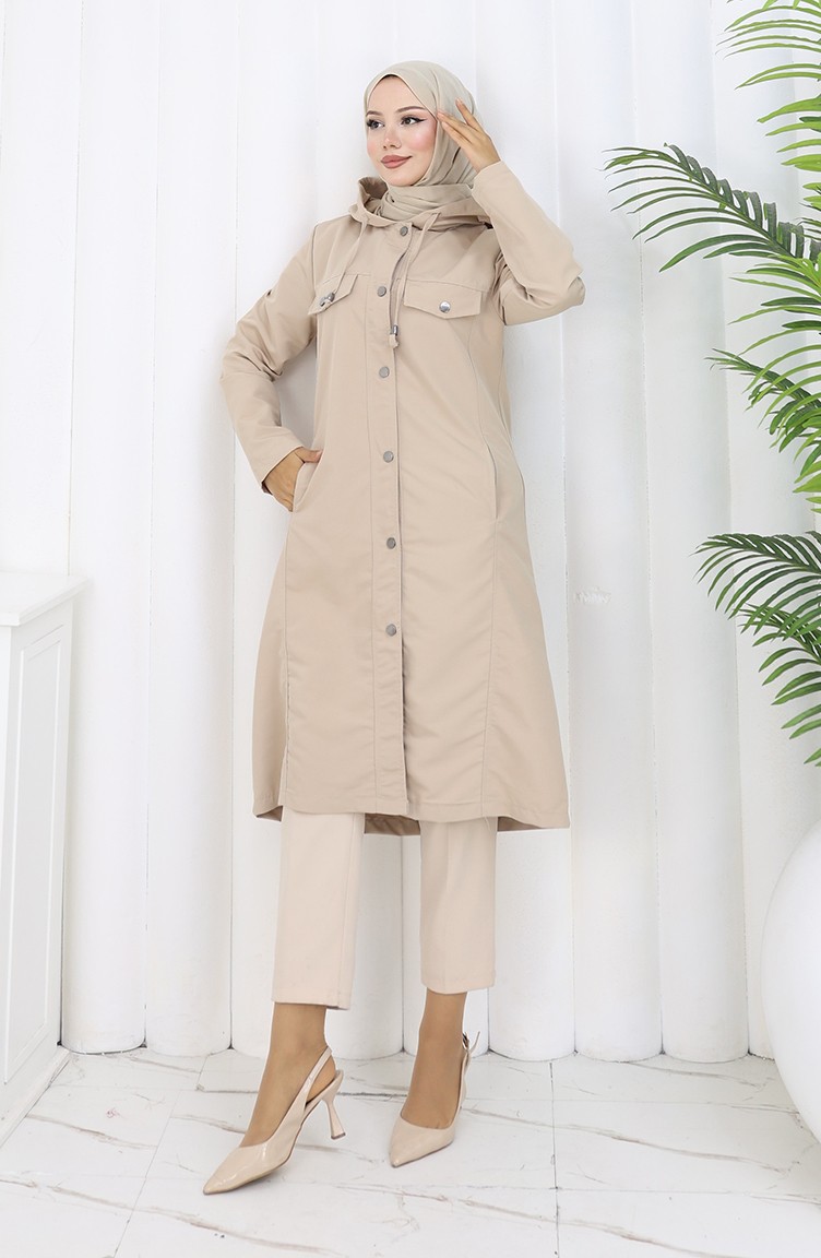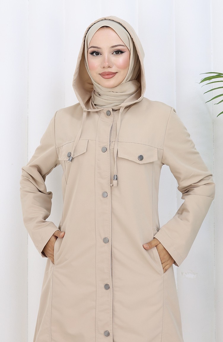 Bondit Stoffen Trenchcoat Met Capuchon 0185-04 Beige 0185-04