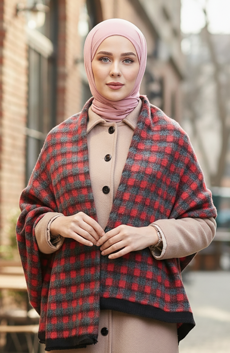 Schoudersjaal 1064-01 Zwart Rood 1064-01