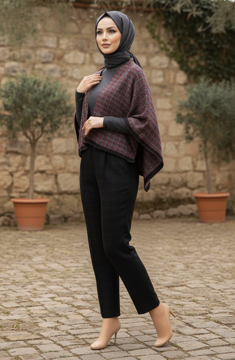 Schoudersjaal 1082-01 Zwart Rood 1082-01