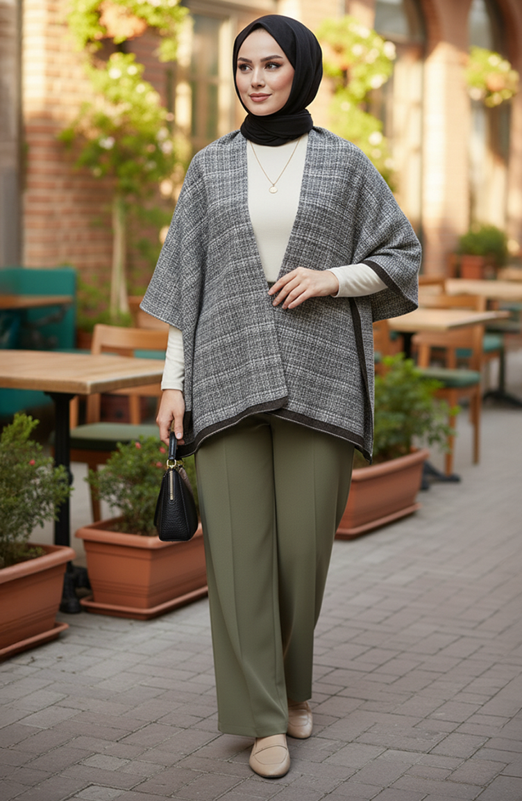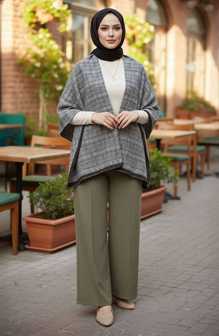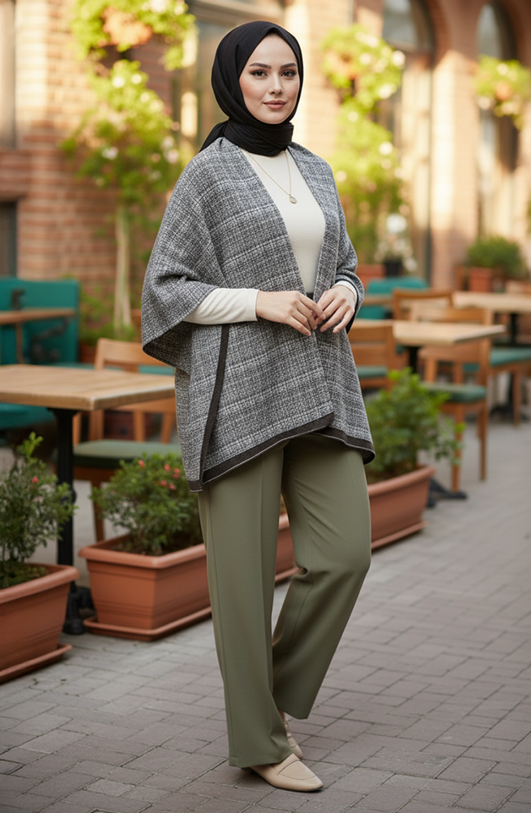Schoudersjaal 1088-01 Zwart Bruin 1088-01