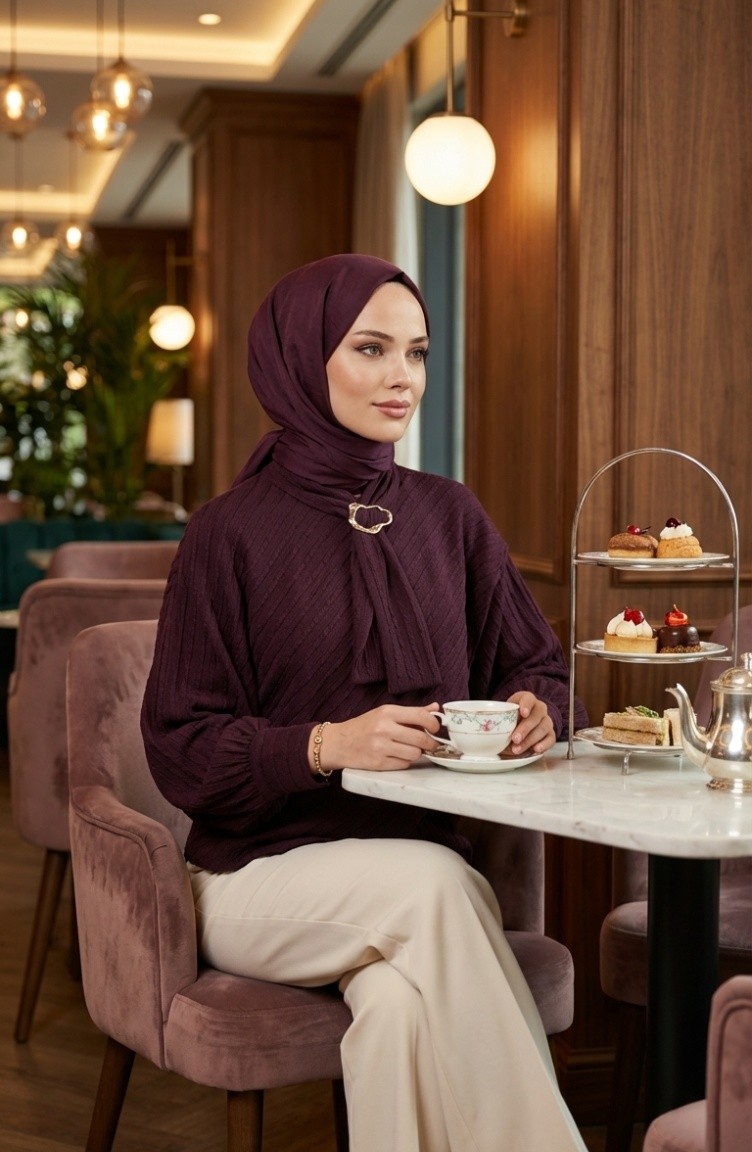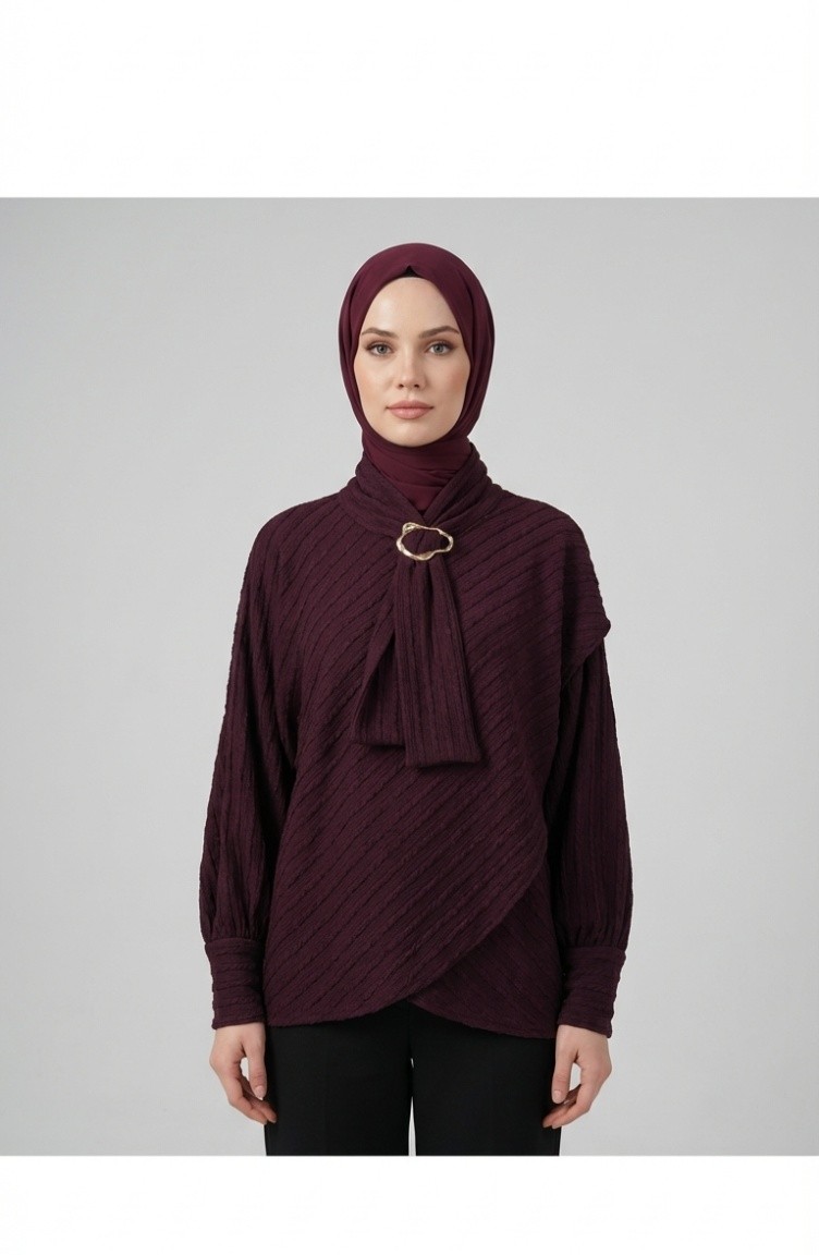 Blouse Met Strikkraag 71370-01 Pruim 71370-01