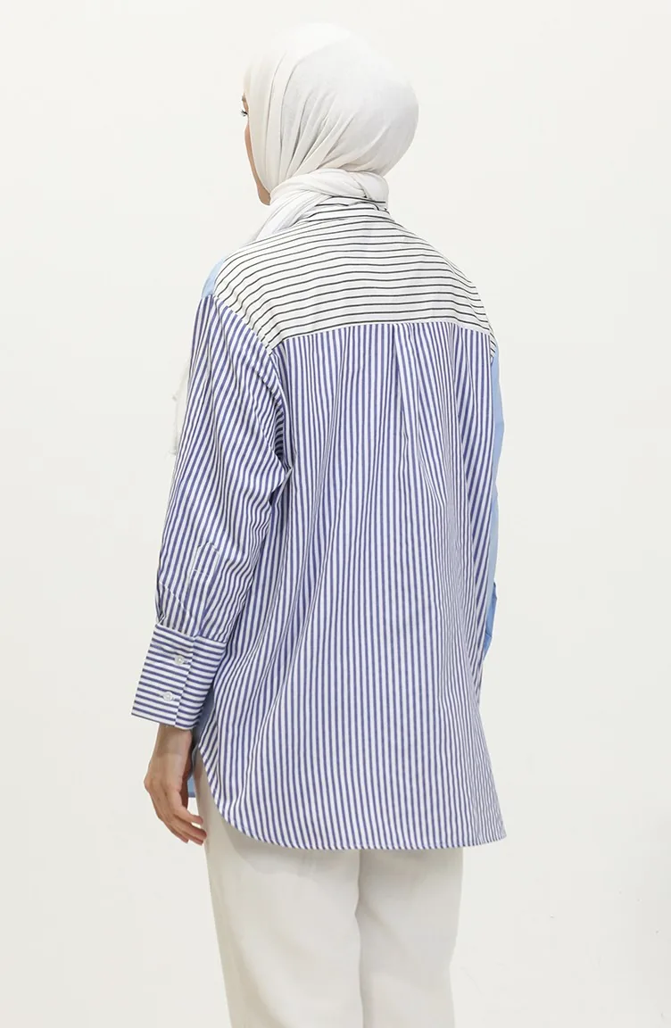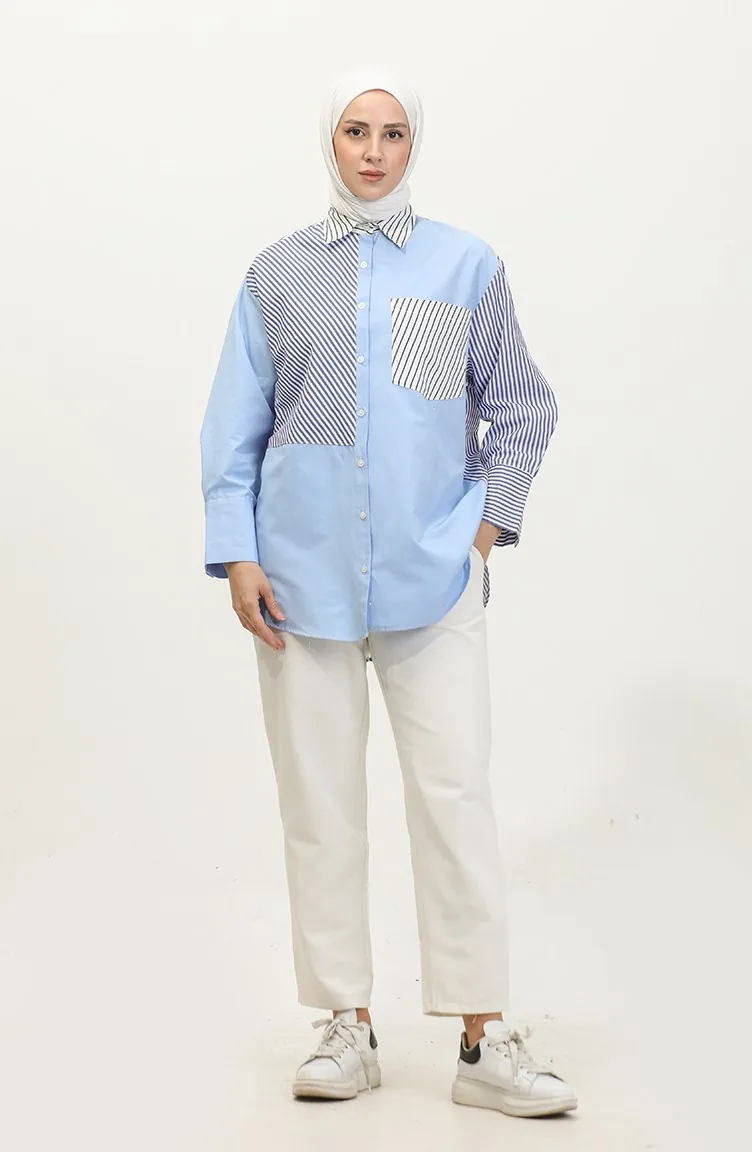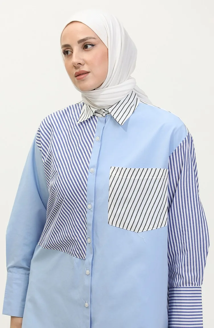 The cotton fabric has an absorbent texture. Designed with a striped fabric. The product is used unlined. Long sleeve product. Suitable for 4 seasons. Plus size option available.