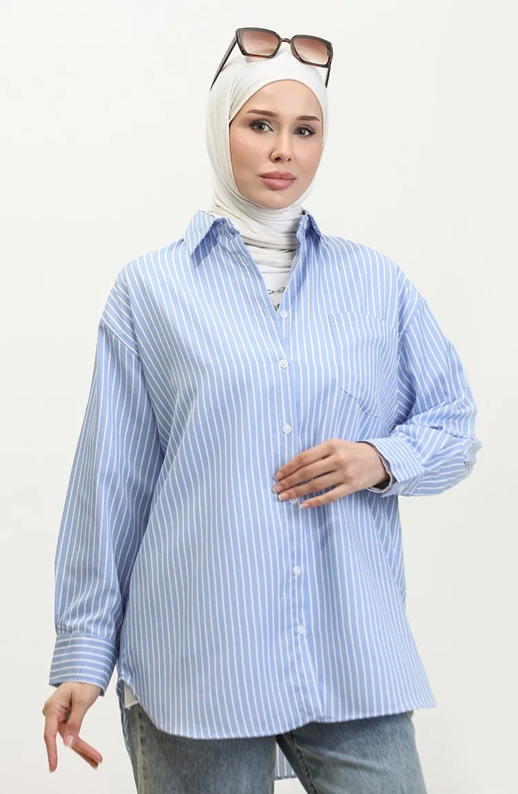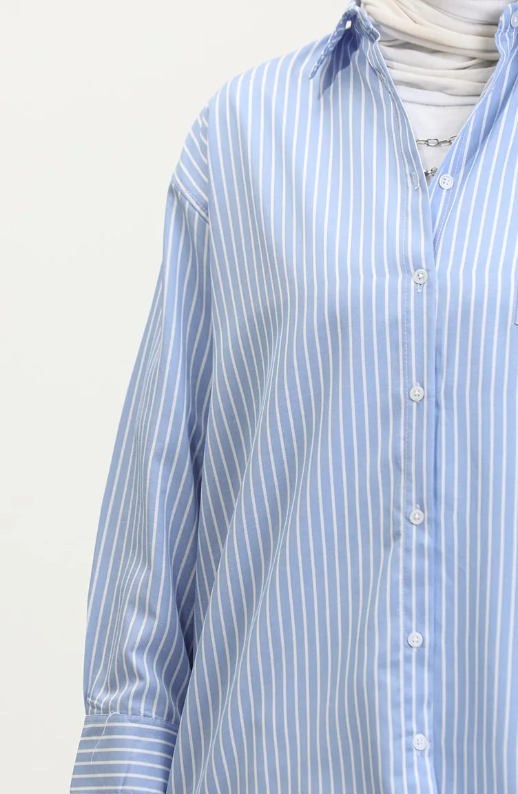 Oversized Gestreept Overhemd 4801-01 Blauw 4801-01