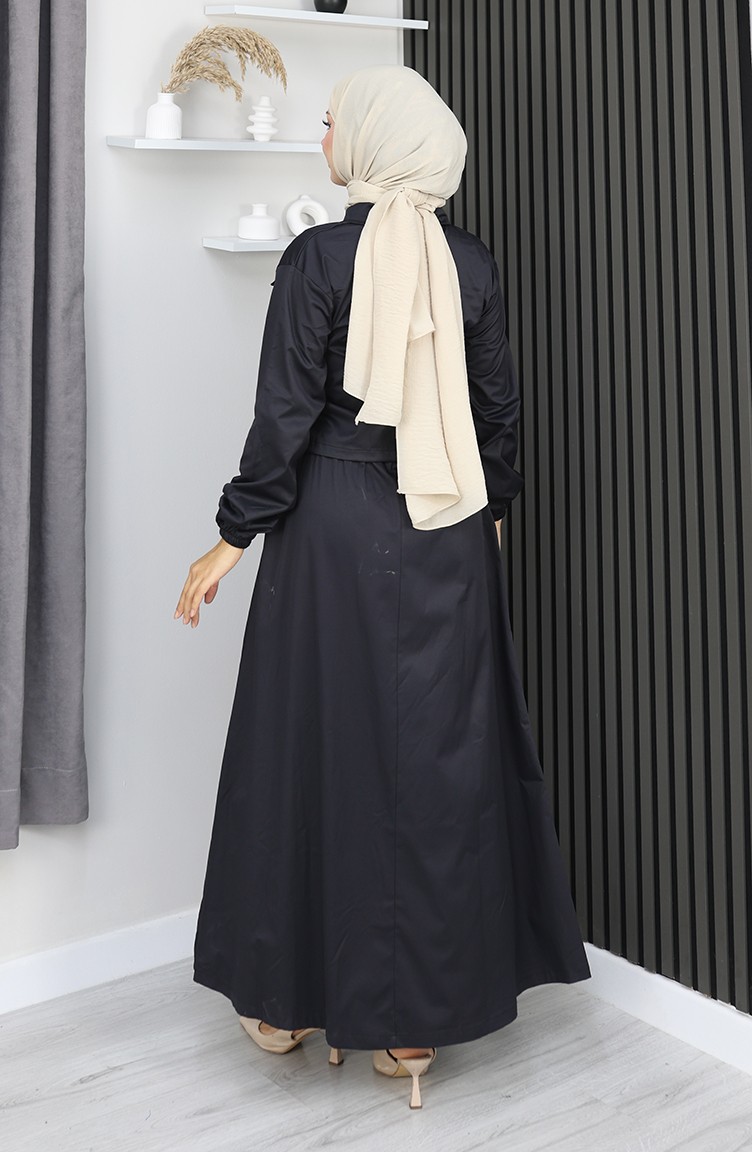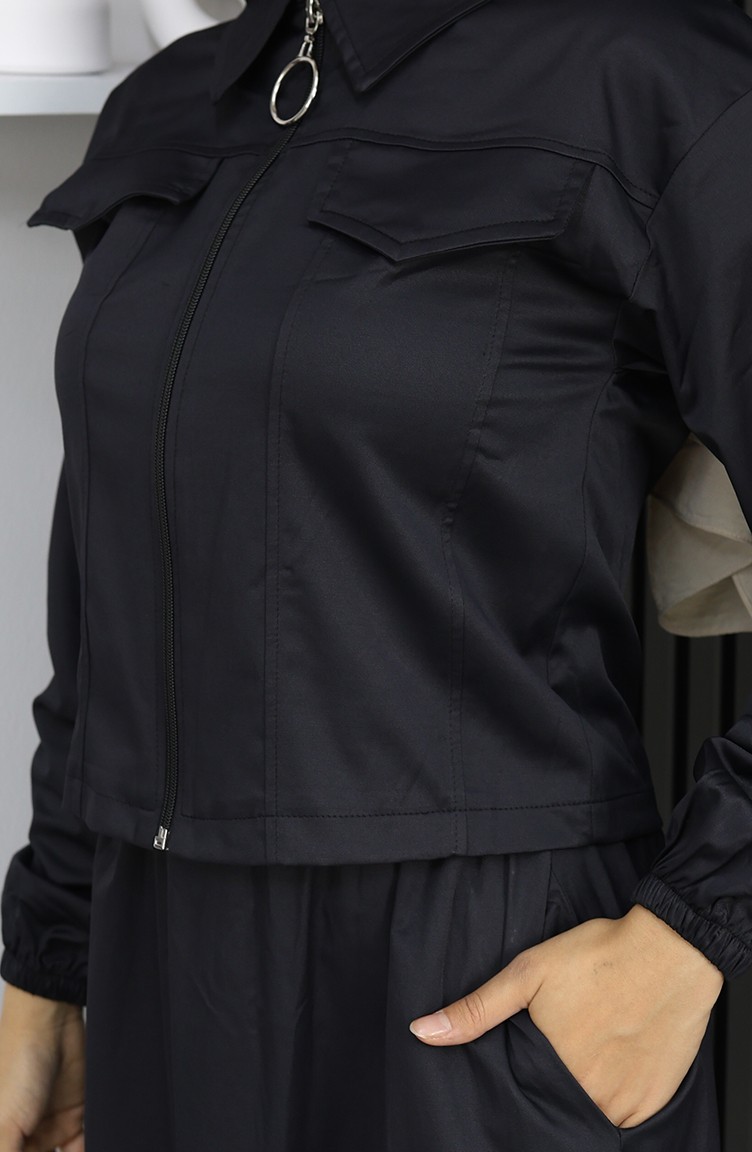 Black color is used. The cotton fabric has an absorbent texture. It has a plain appearance. Zipper is used for easy handling. It's made of elastic sleeves. Suitable for 4 seasons. The size worn by the model, is the one on the image.