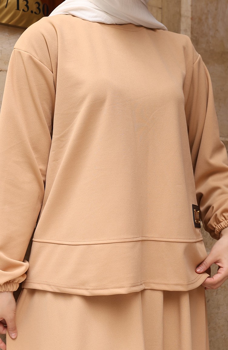 Scuba Fabric Hijab Tuniekrok Tweedelig Pak 0221-02 Melkkoffie 0221-02