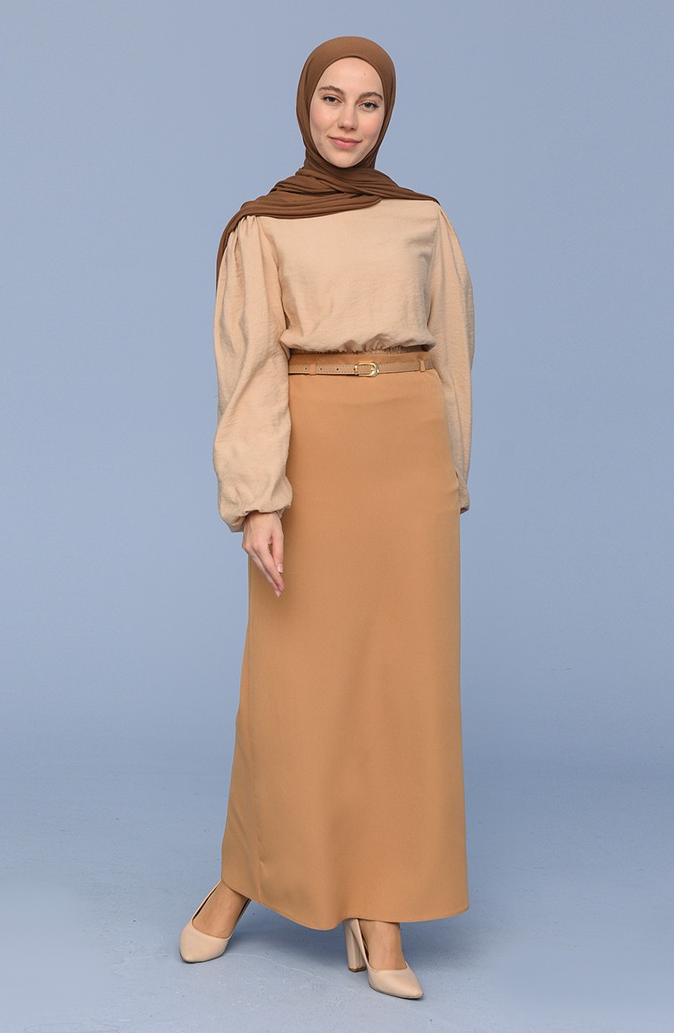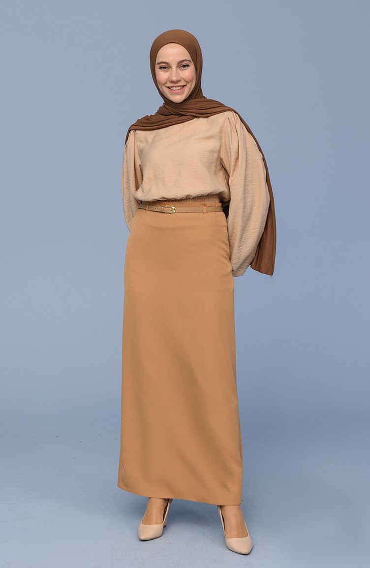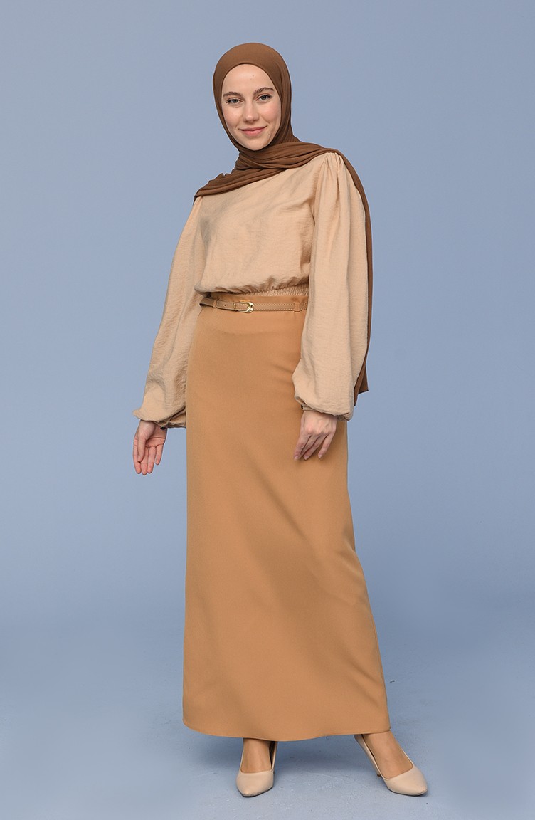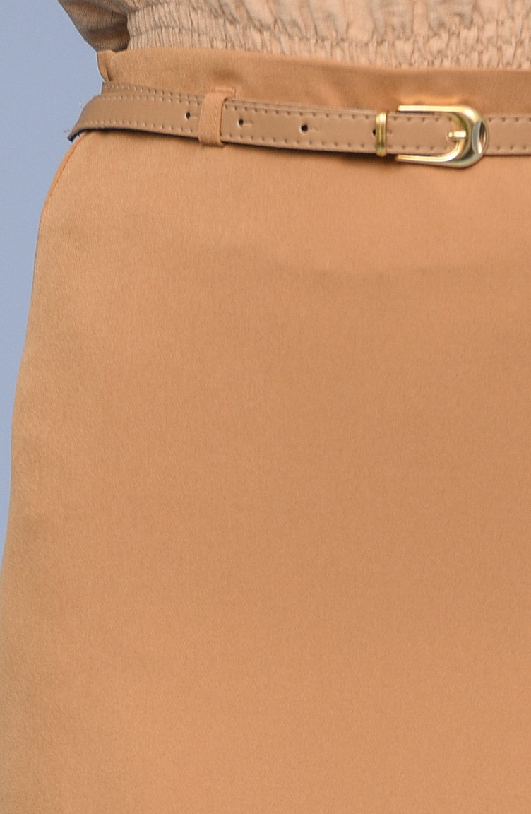 Dark Beige is used. Lycra fabric provides comfortable use. It has a plain appearance. Belt detail has used for a stylish look. Suitable for 4 seasons. Plus size option available.