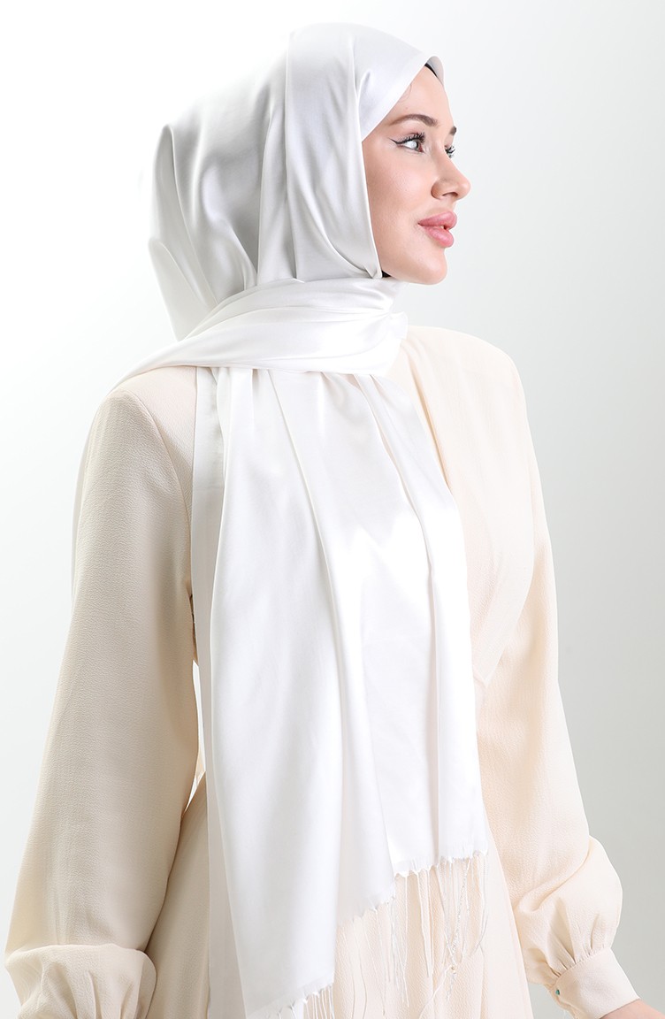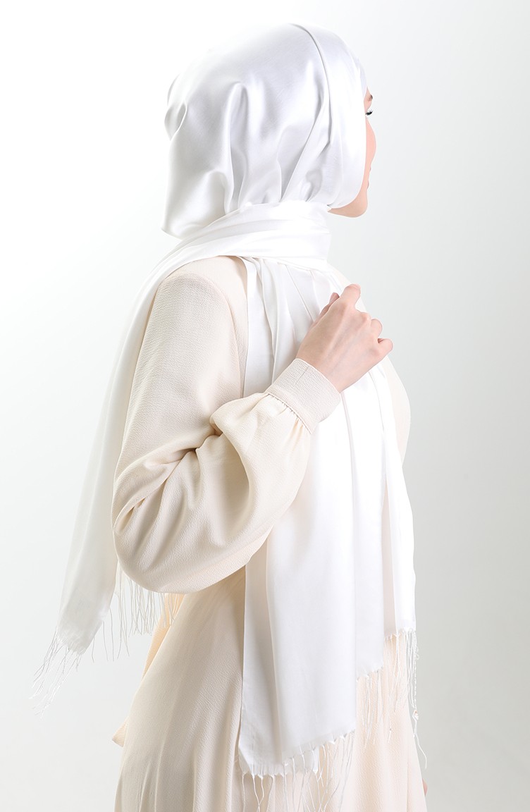 Lange Viscose Sjaal Met Franjes 70331-07 Ecru 70331-07