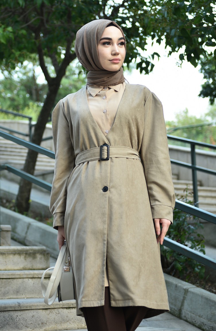 Viscose is a type of synthetic fabric and is convenient to use. It has a plain appearance. Belt detail has used for a stylish look. Long sleeve product. Autumn. Plus size option available.