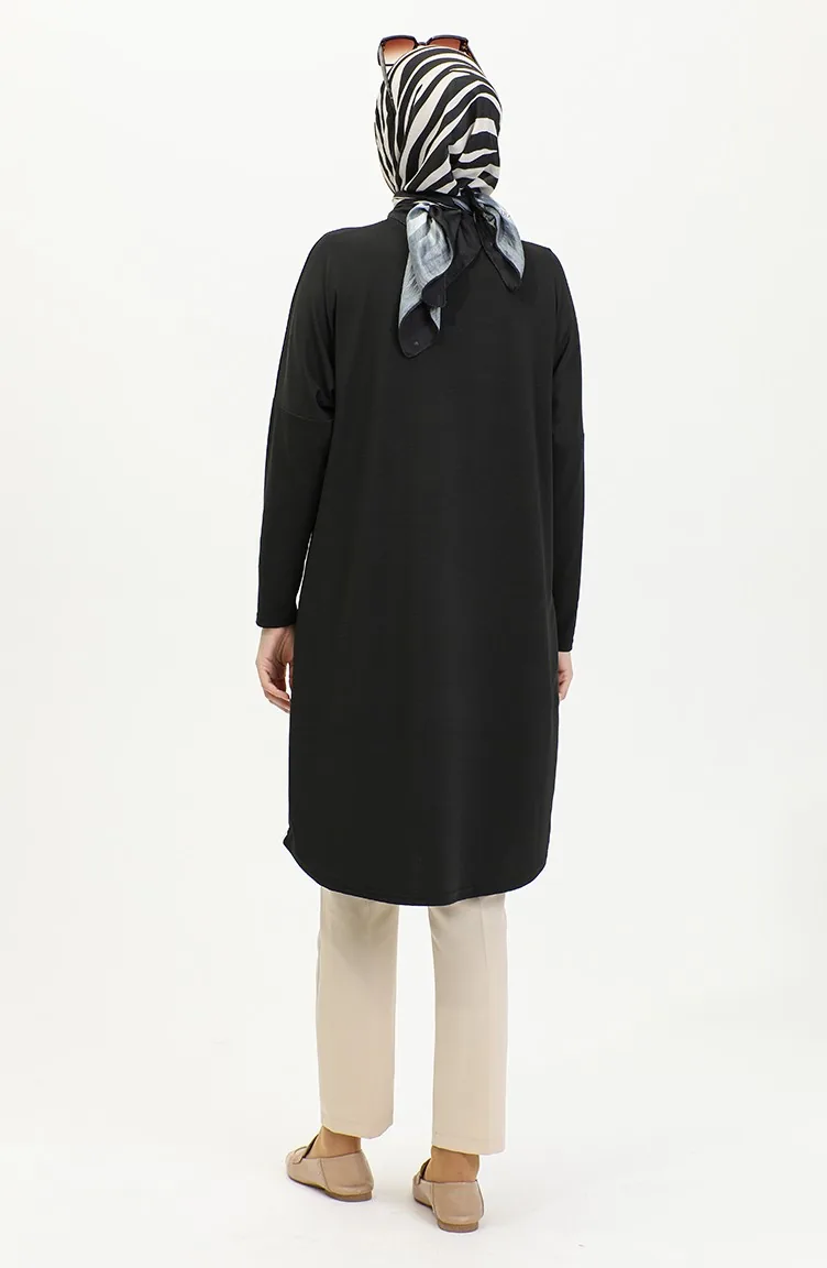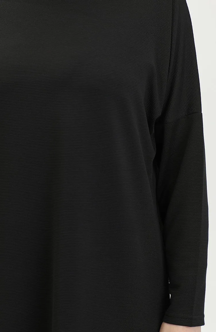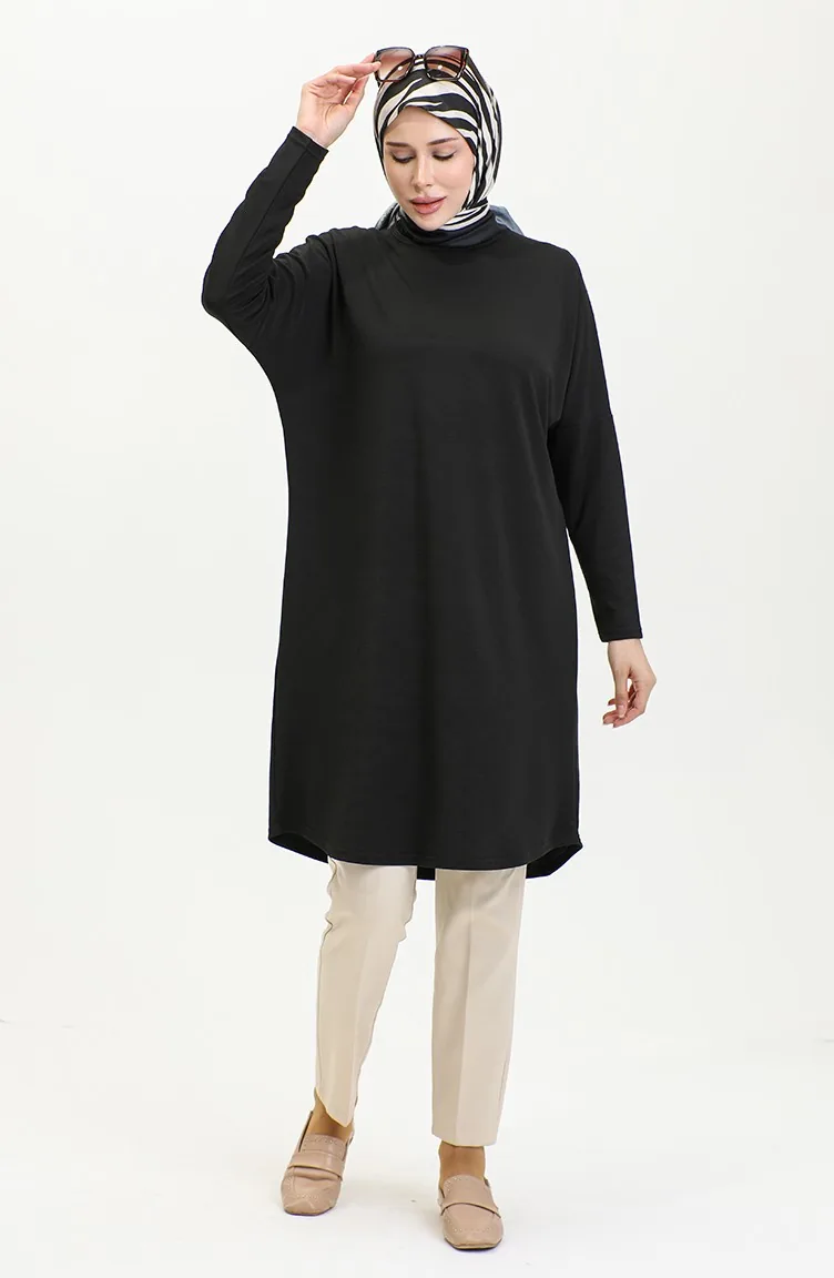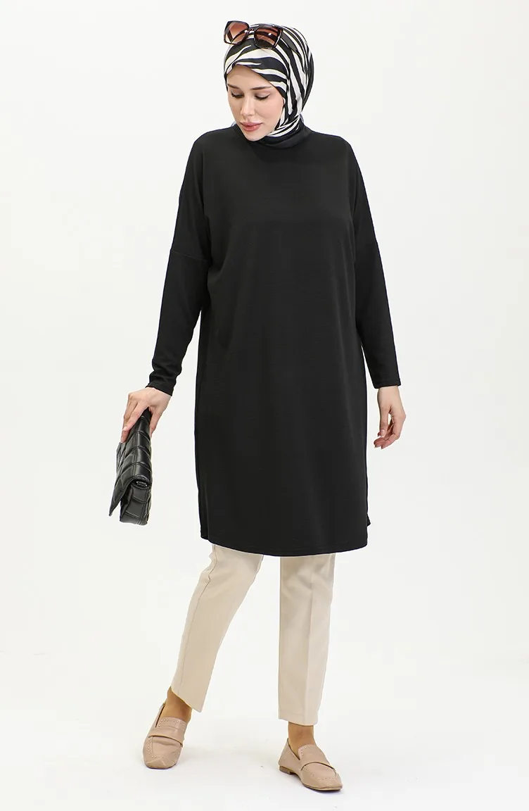 Comfortabel Gesneden Vloeiende Effen Tuniek 8730-01 Zwart 8730-01