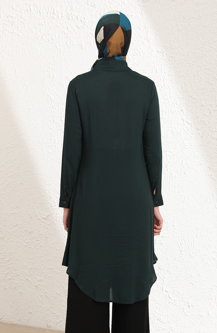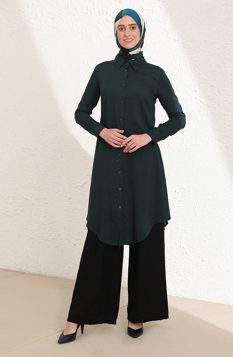 Emerald green color used. The cotton fabric has an absorbent texture. It has a plain appearance. The product is used unlined. Long sleeve product. Designed for summer use. Plus size option available.