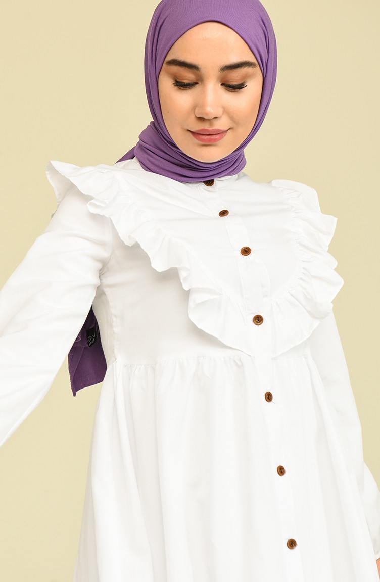 The cotton fabric has an absorbent texture. It has a plain appearance. The product is used unlined. It's made of elastic sleeves. Tippet collar is prefered. Suitable for 4 seasons. Plus size option available.