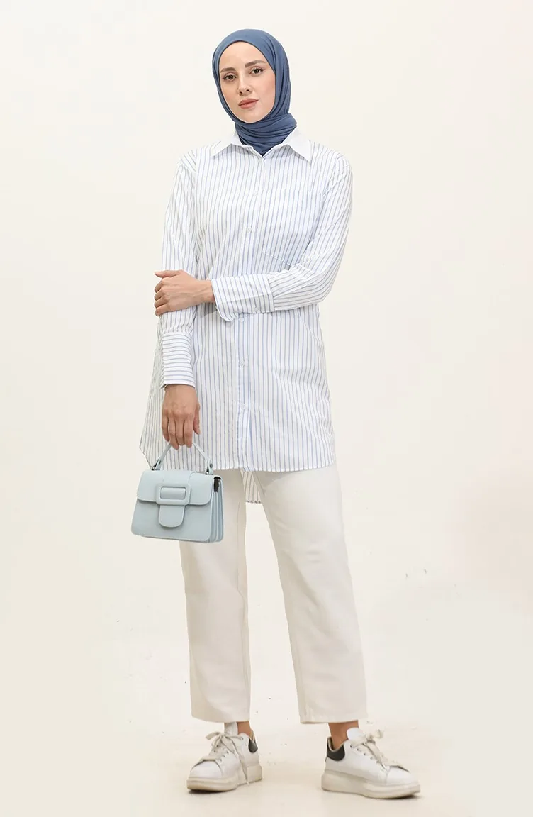 Gestreepte Gegarneerde Tuniek 4822-05 Blauw Wit 4822-05
