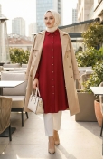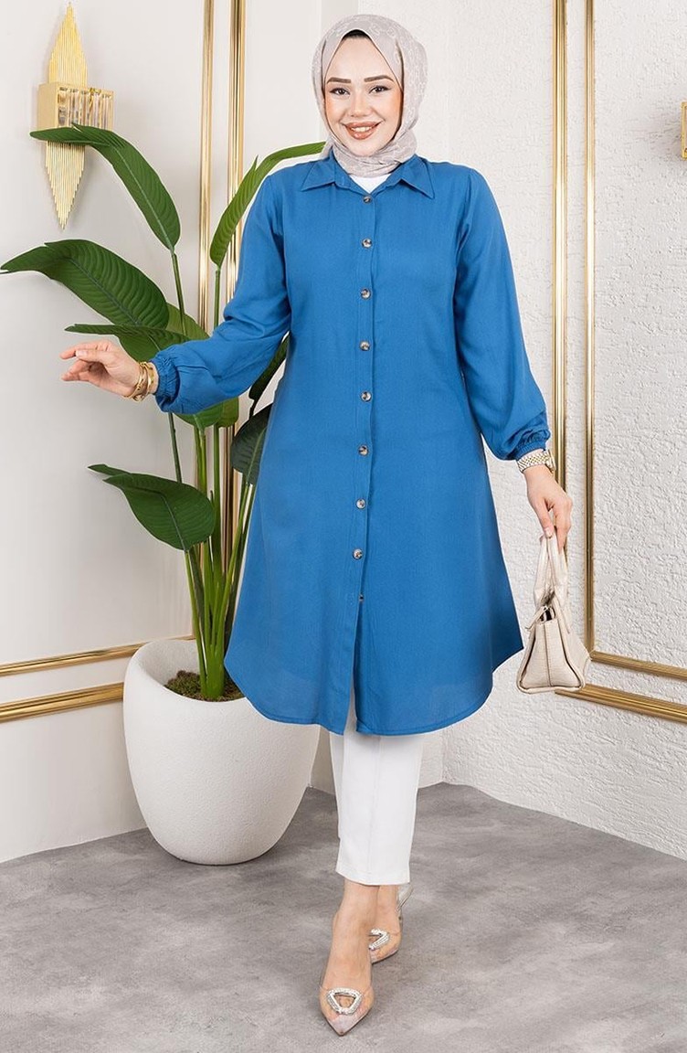 Indigo color is used. Viscose is a type of synthetic fabric and is convenient to use. It has a plain appearance. Buttons have been used to make it easy to use. It's made of elastic sleeves. Suitable for 4 seasons. The size worn by the model, is the one on the image.