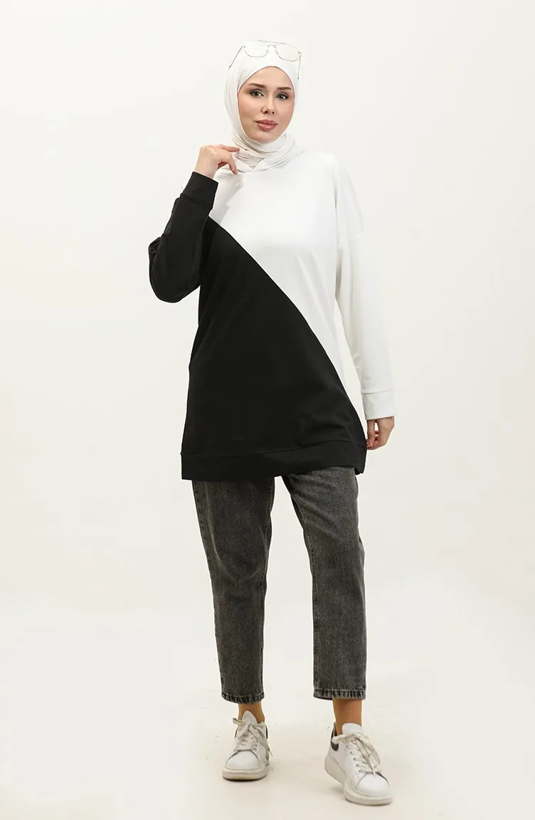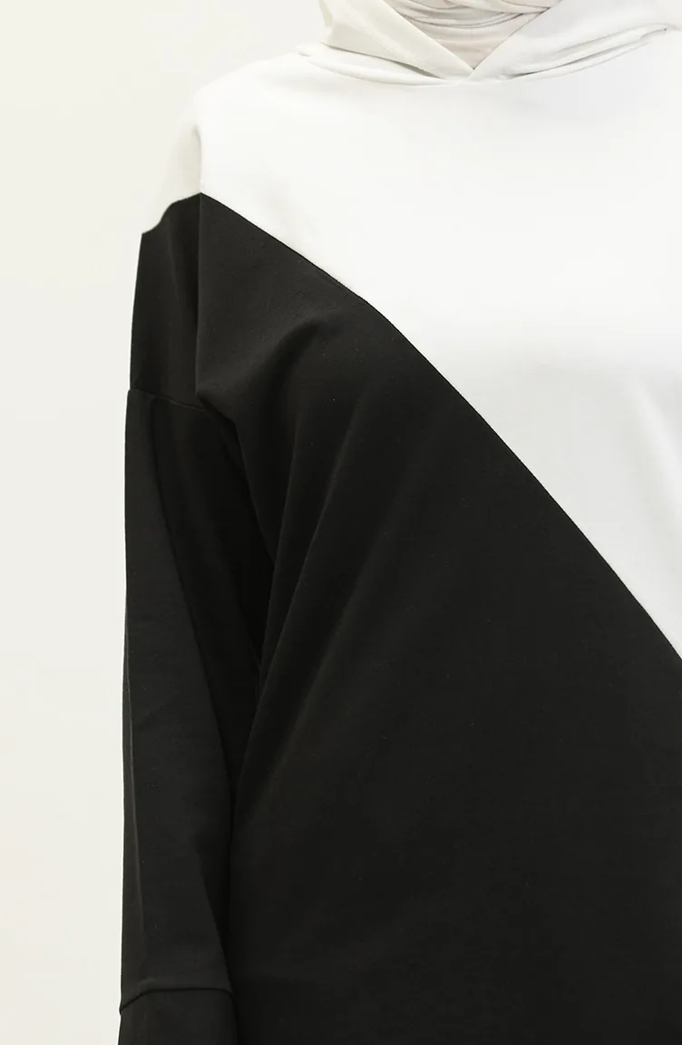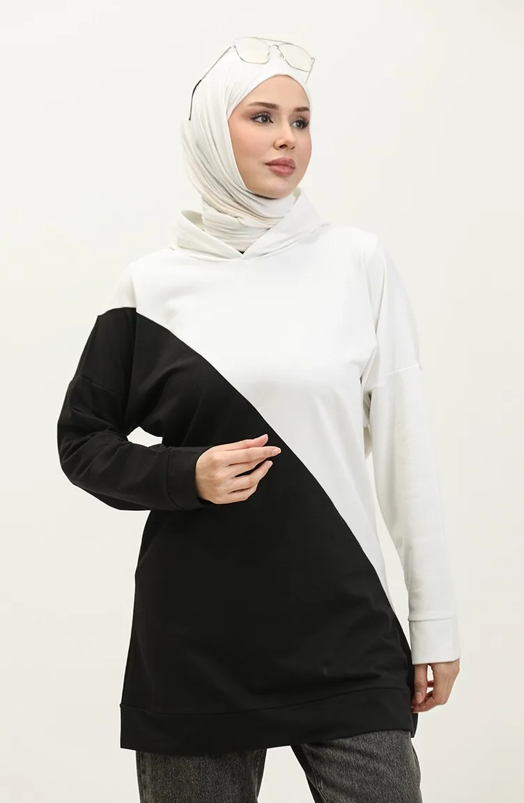 Sweatshirt Met Capuchon 23128-01 Zwart Ecru 23128-01