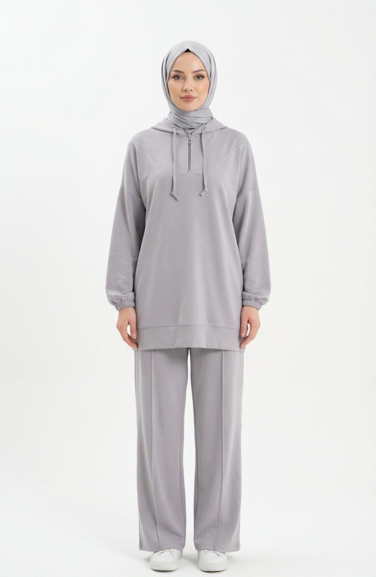 Gray color is used. Oysho. It has a plain appearance. Zipper is used for easy handling. Suitable for 4 seasons. Rahat. Plus size option available.
