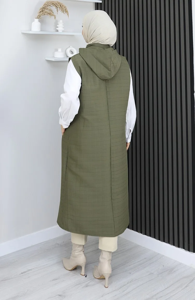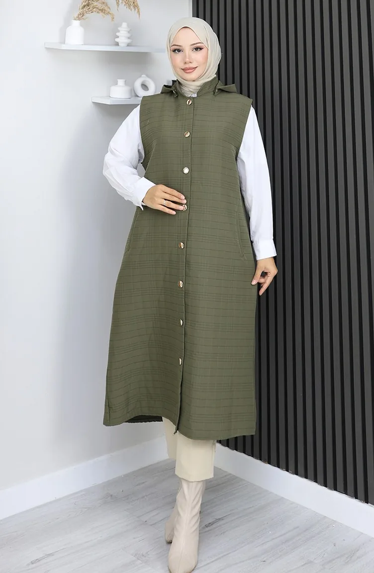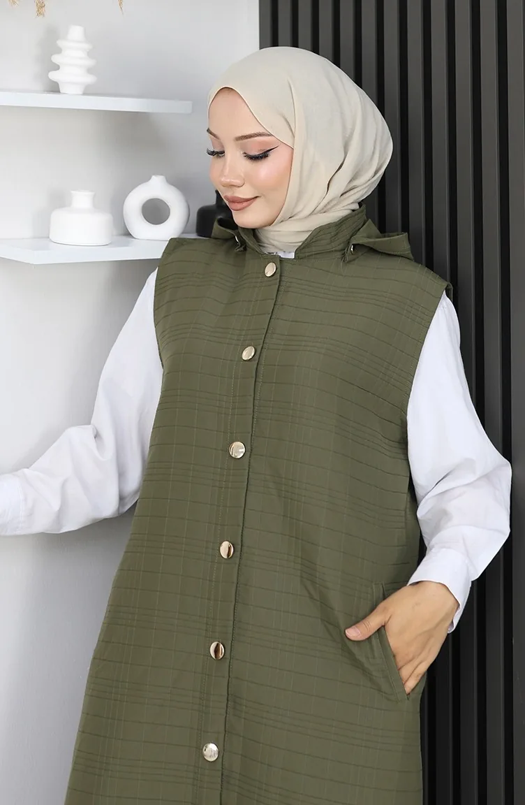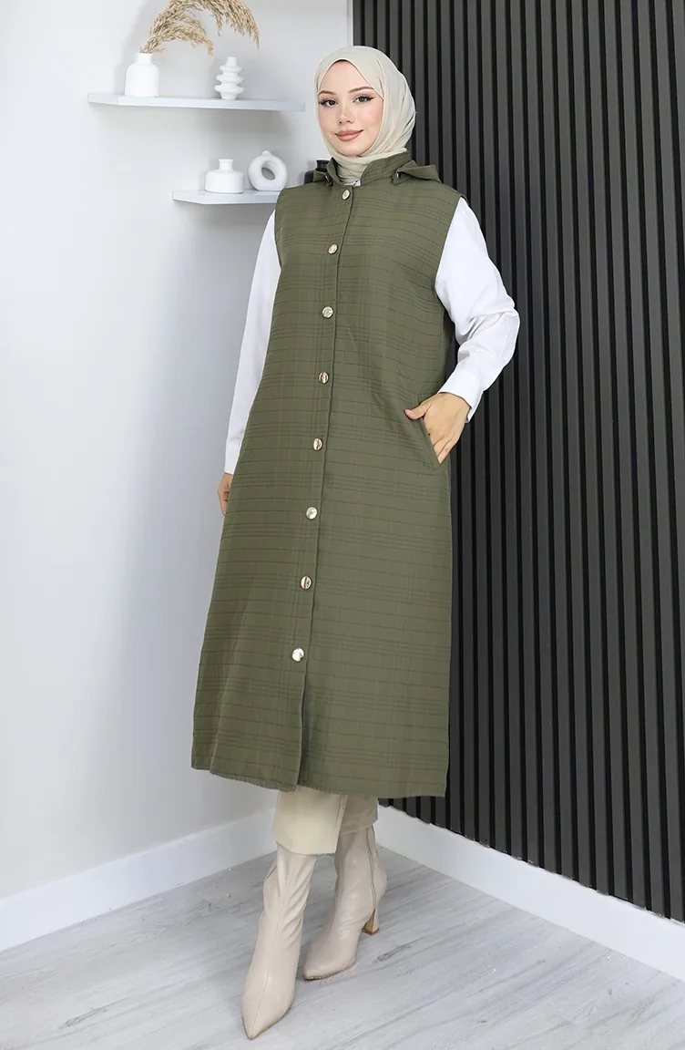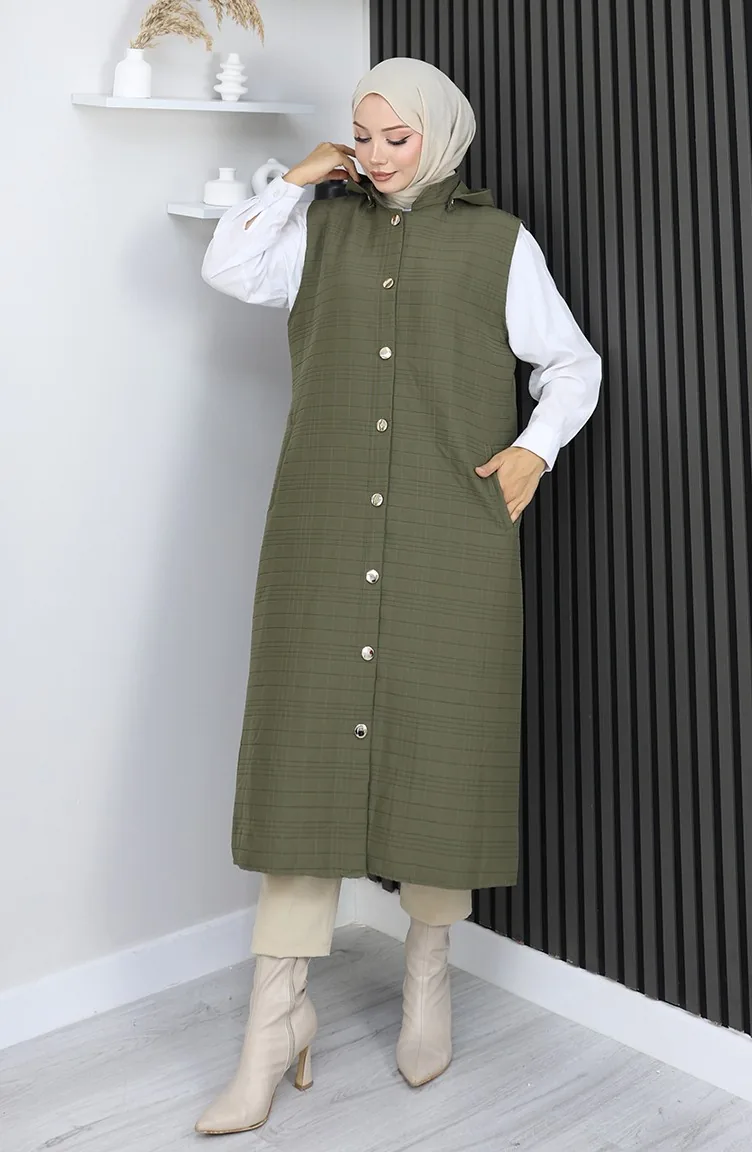 Gewatteerd Stoffen Vest Met Knopen 0186A-04 Khaki 0186A-04