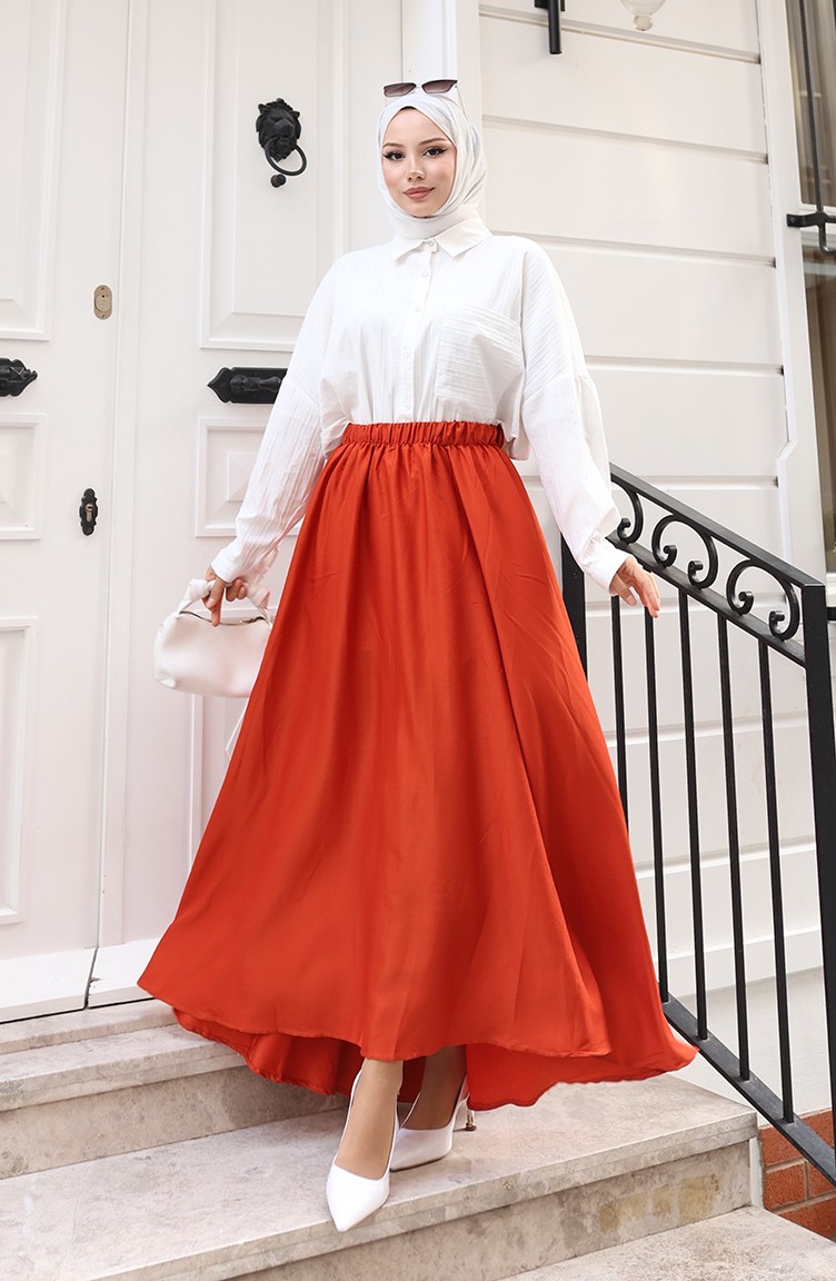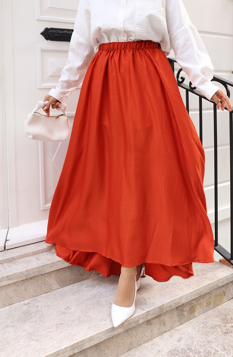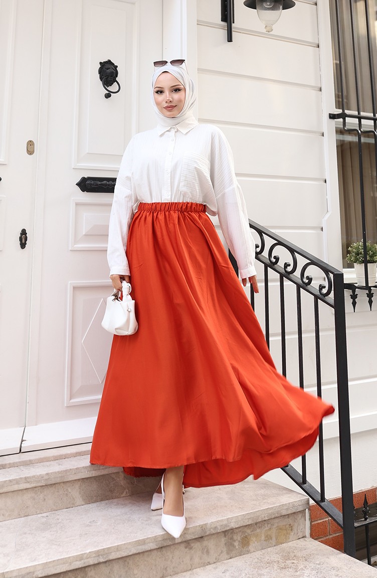 Relaxte Rok Met Elastische Tailleband 0227-02 Terracotta 0227-02