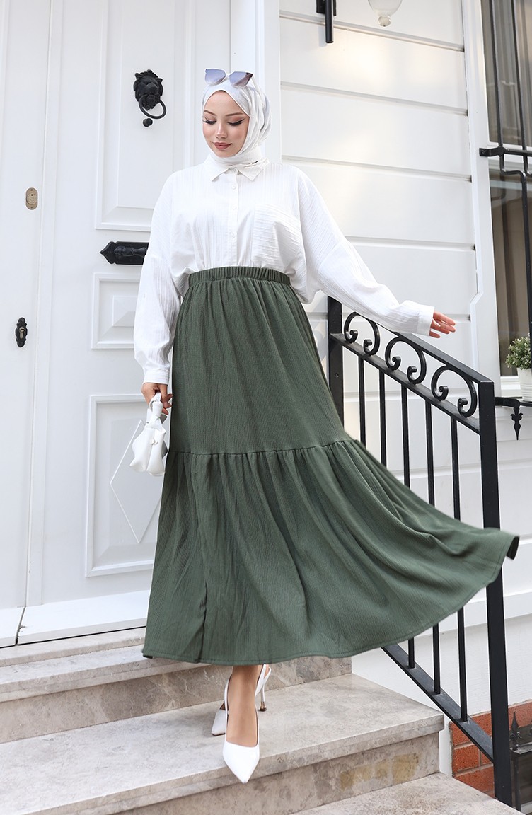 Relaxte Rok Met Elastische Tailleband 0227C-05 Khaki 0227C-05