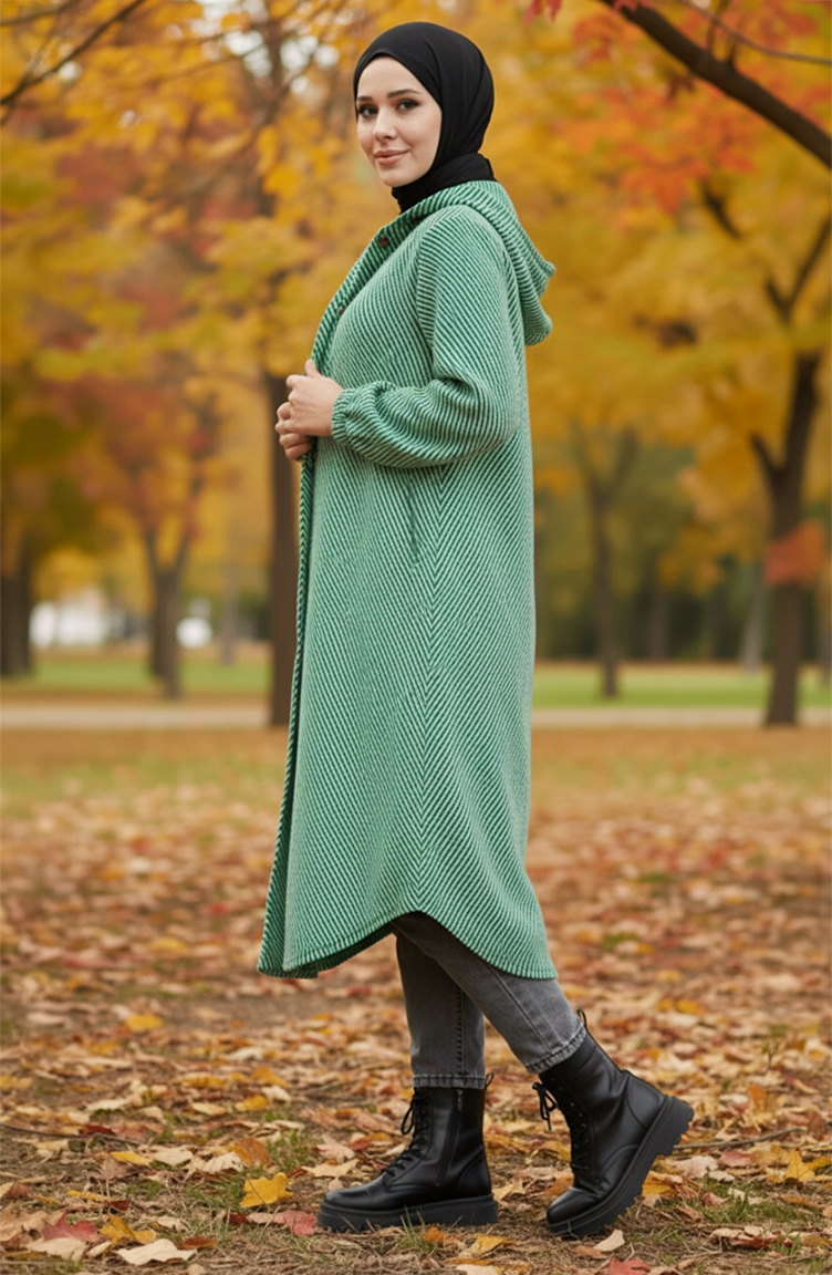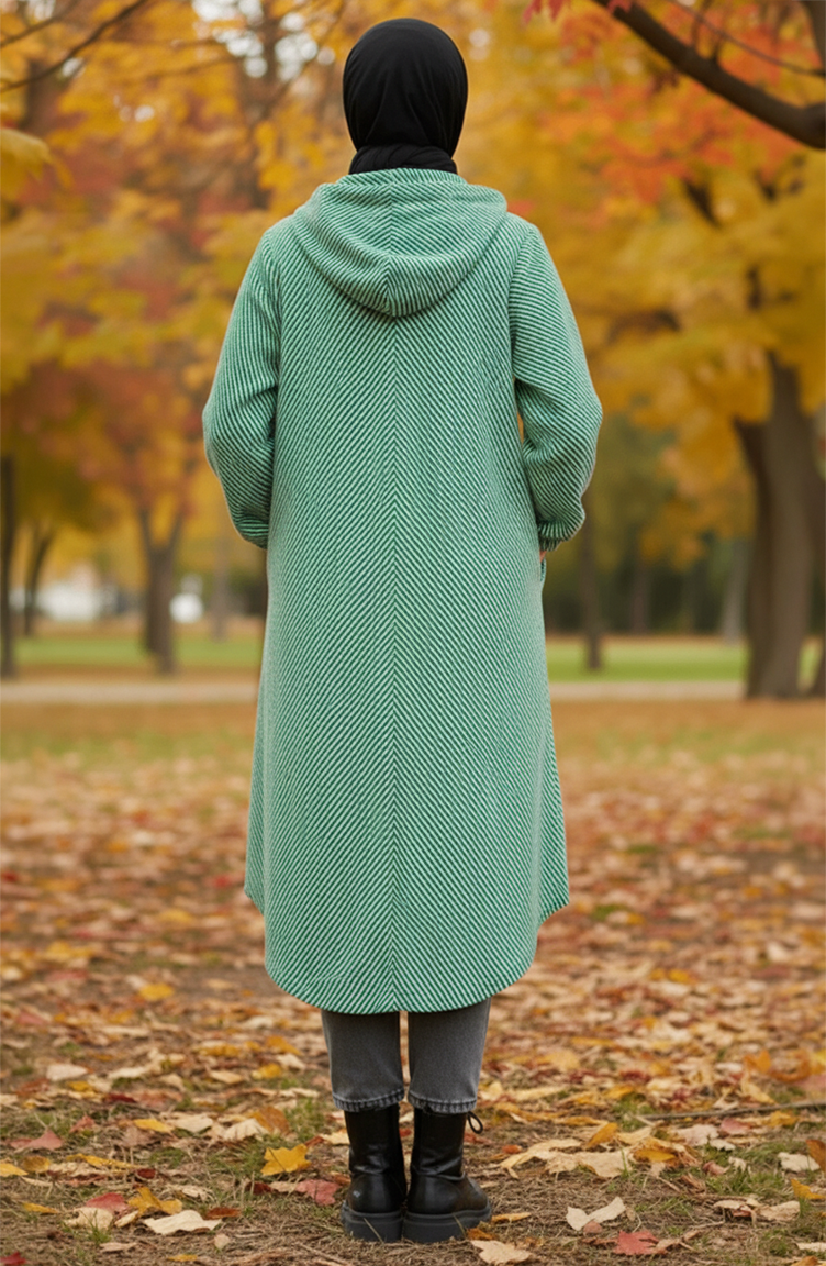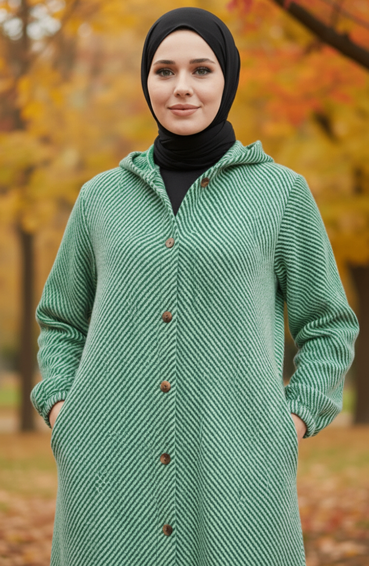 Kasjmier Jas Met Capuchon En Knopen 0201-18 Groen 0201-18