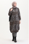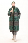 Winterjas Met Etnische Print En Knoopsluiting 2500-04 Smaragdgroene Nerts 2500-04