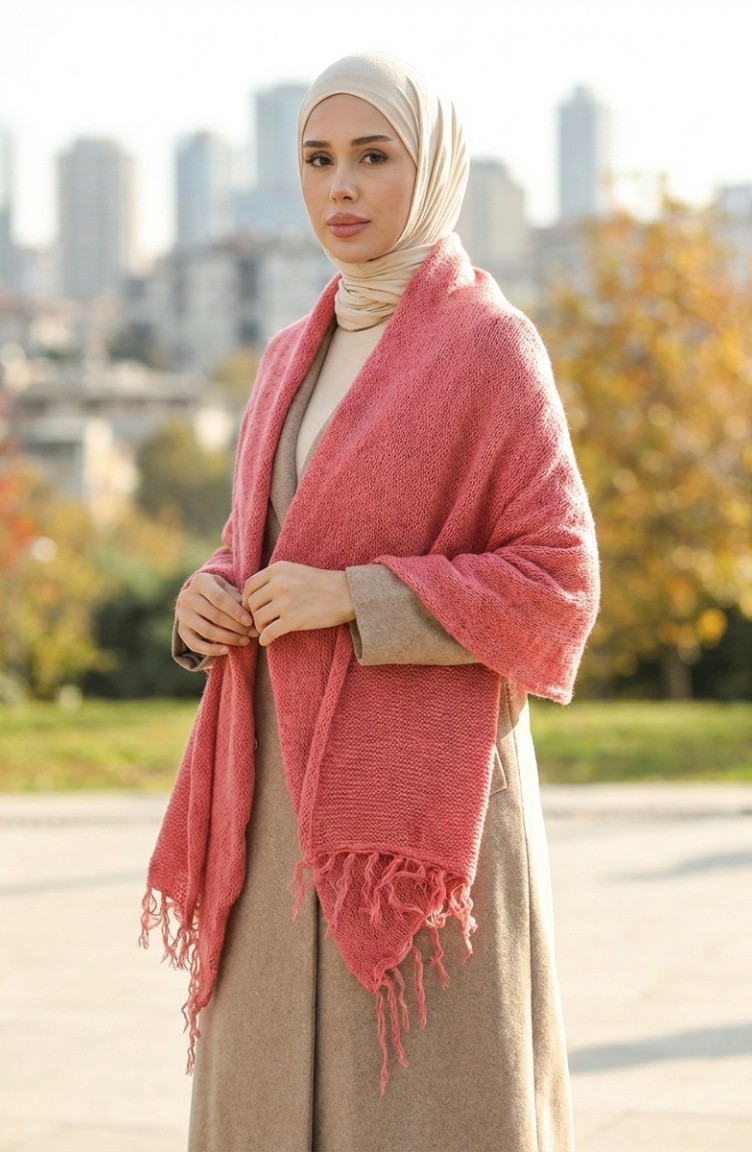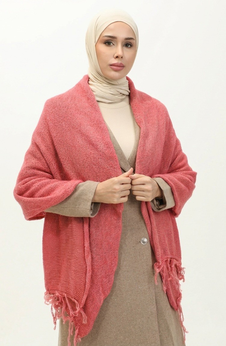 Triko Örme Omuz Şalı 2064-02 Nar Çiçeği