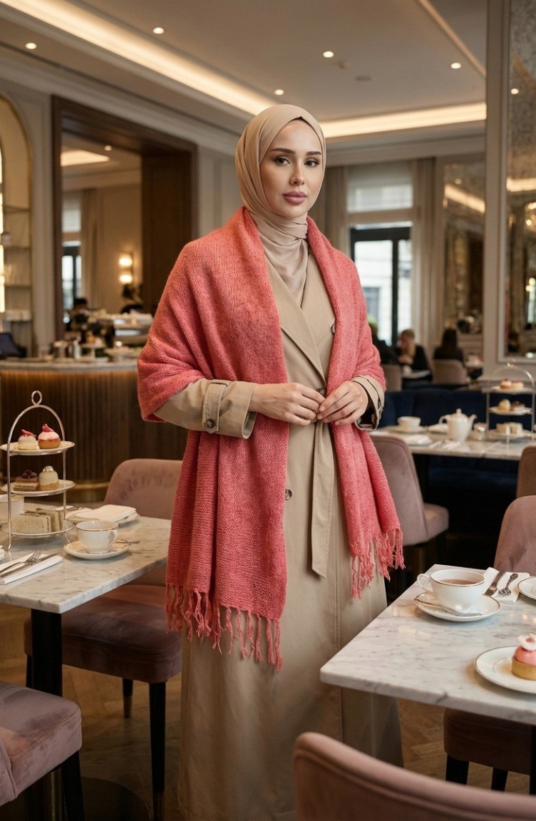 İlkbahar ve yaz aylarının serin akşamlarında zarafetinizi tamamlayacak Triko Örme Omuz Şalı, muhafazakar giyim tarzına modern bir dokunuş katıyor. Somon renginin sıcak tonlarıyla tasarlanan bu şal, hem günlük kombinlerinizde hem de özel davetlerde omuzlarınıza şıklık katmak için idealdir.Kumaş Özelliği: Yüksek kaliteli, nefes alabilen triko örme dokusu sayesinde terletme yapmaz ve gün boyu konfor sunar.Tasarım: Uç kısımlarındaki hafif püskül detayları, klasik örgü yapısına dinamik bir hava katar.Kullanım Alanı: Elbiseler, tunikler veya takımların üzerine rahatlıkla atılabilir; dökümlü yapısıyla vücut hatlarını belli etmeden şık bir silüet oluşturur.Kombin Önerisi: Bej veya ekru tonlarındaki feracelerinizle kontrast yaratarak ya da soft tonlardaki içliklerle ton-sür-ton bir görünüm yakalayarak kullanabilirsiniz.Sefamerve kalitesiyle sunulan bu hafif dokulu şal, çantanızda kolayca taşıyabileceğiniz pratiklikte ve her mevsim geçişinde kurtarıcı bir parçadır.