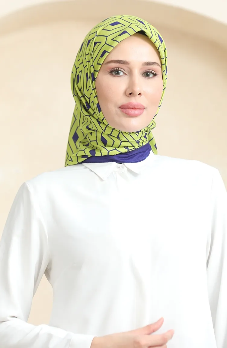 Soft Pamuk Eşarp 19094-10 Yağ Yeşili Lacivert