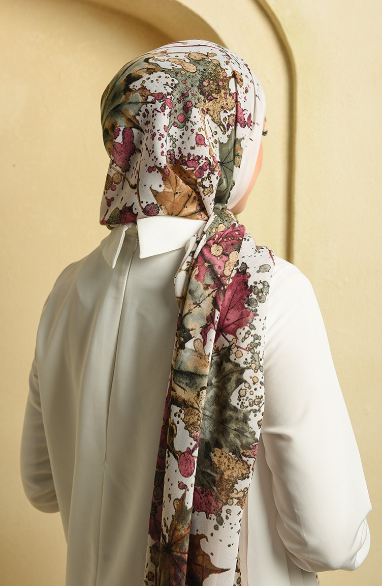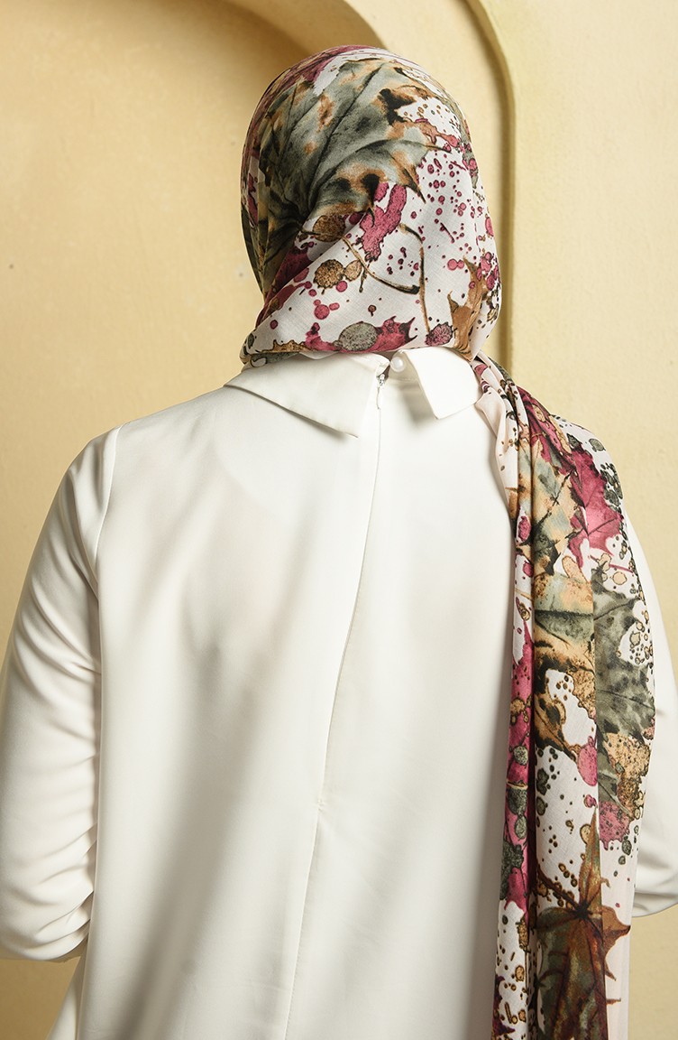 Çınar Yaprağı Desen Pamuk Şal 12305-14 Krem Mürdüm