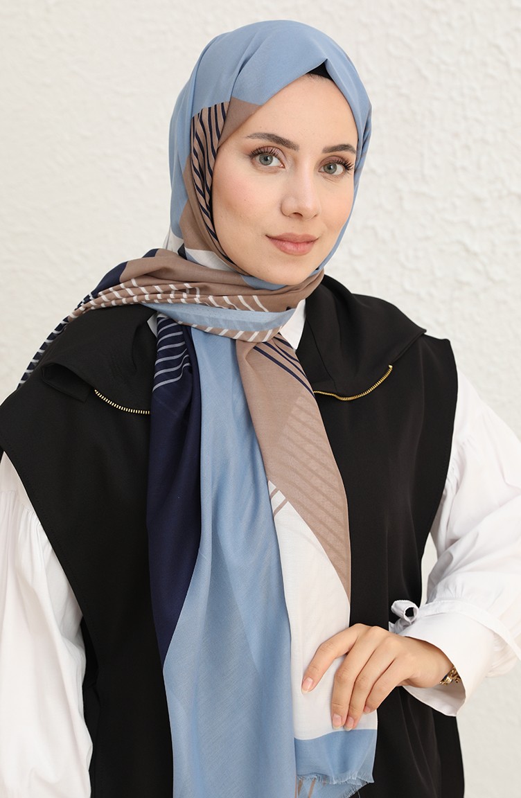 Çizgi Desenli Pamuk Şal 1097-11 Lacivert İndigo