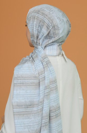 Desenli Pamuk Şal 99296-01 Mavi Gri