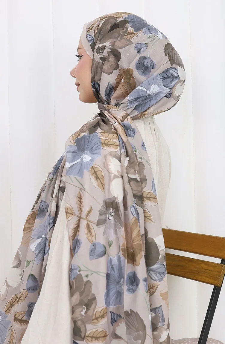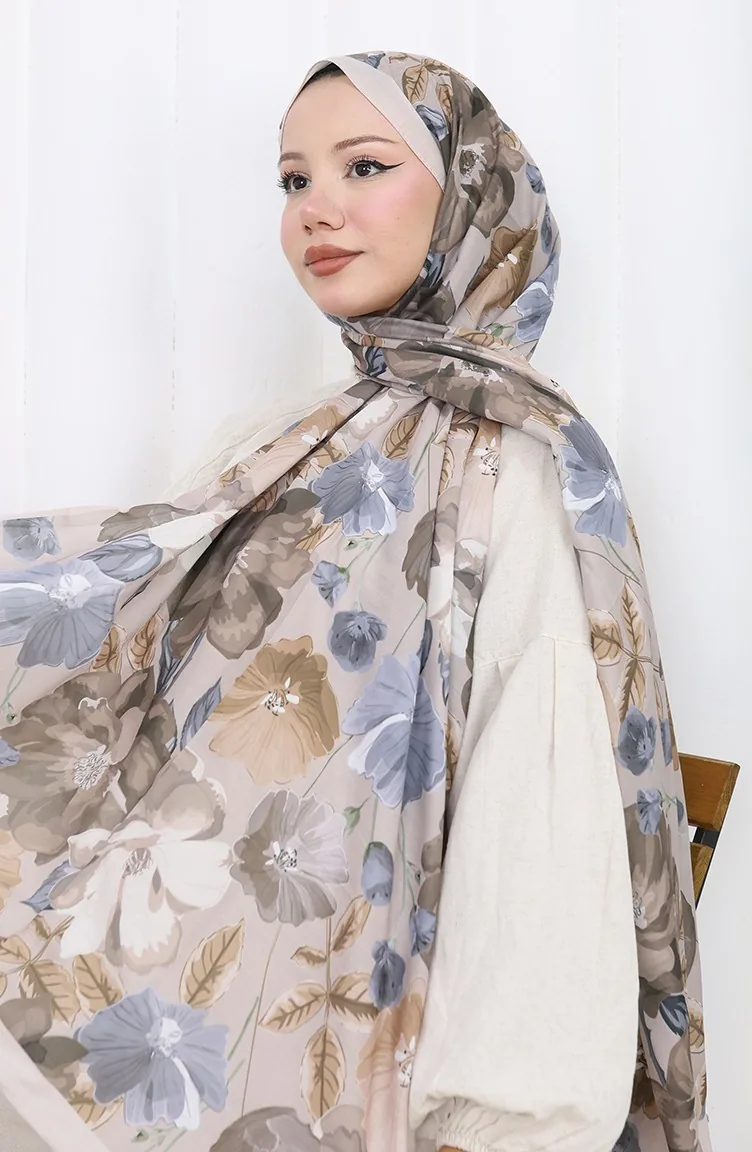 Desenli Pamuklu Koza Şal 70323-01 Taş Gri