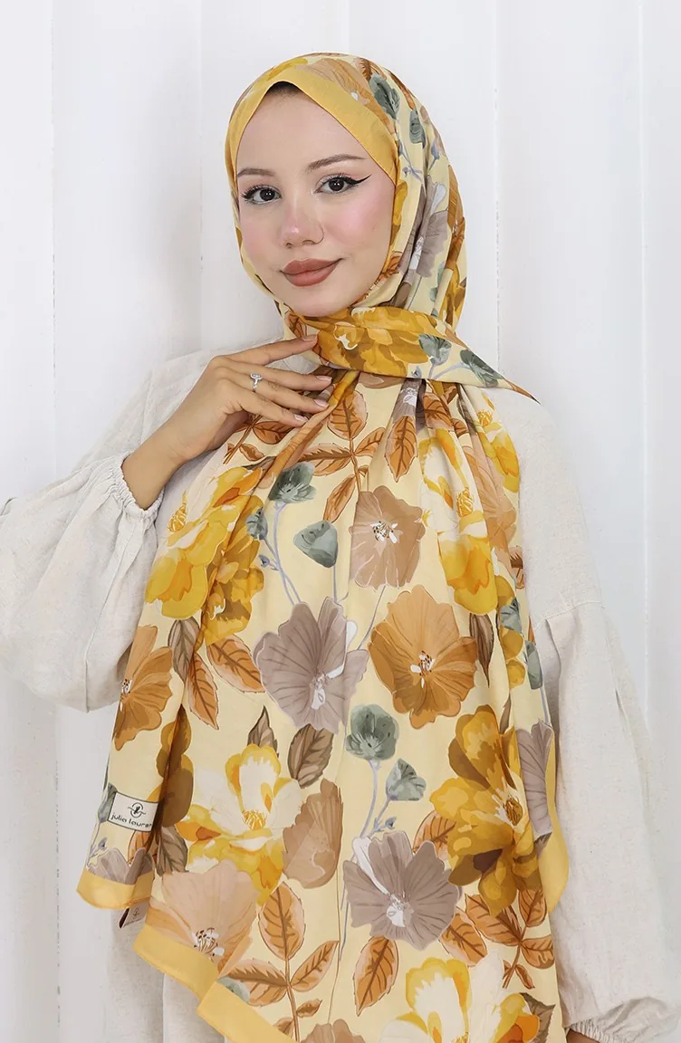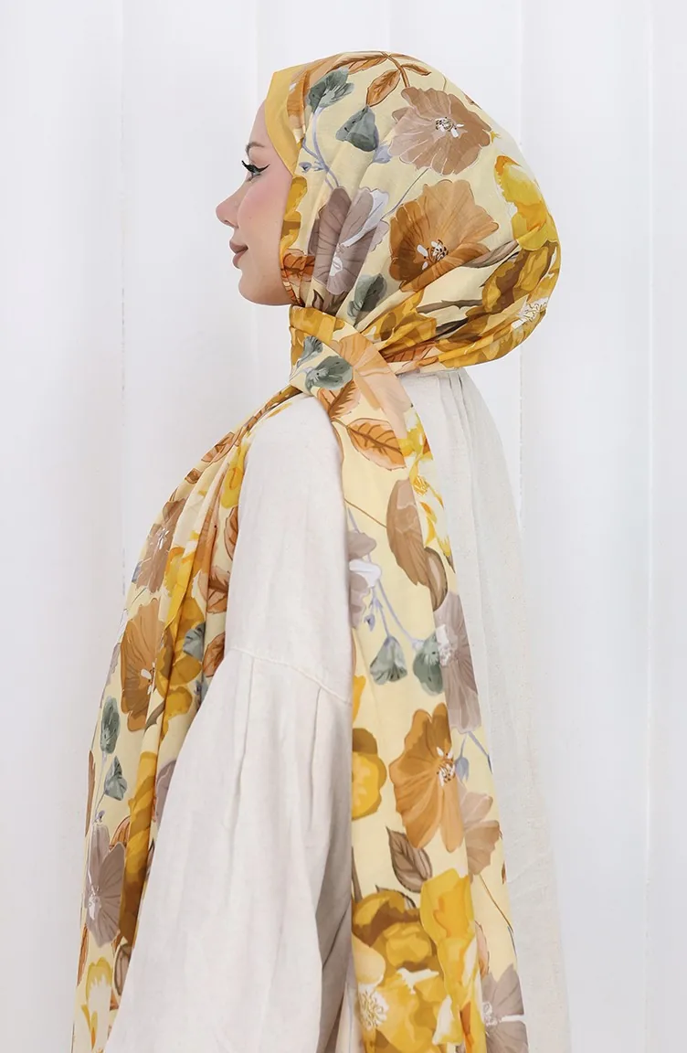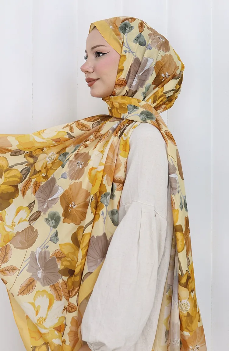 Desenli Pamuklu Koza Şal 70323-06 Hardal