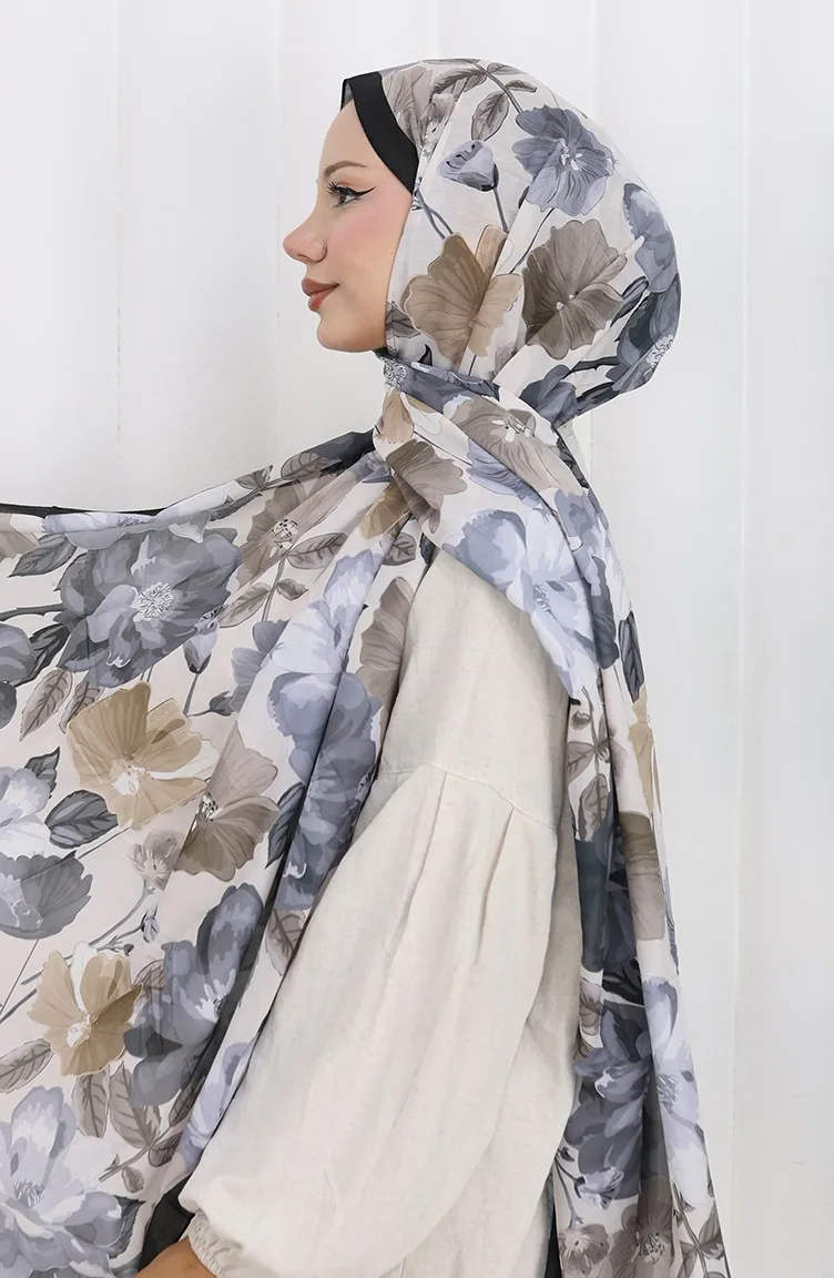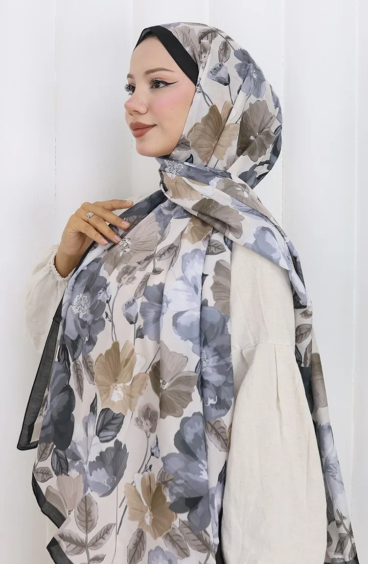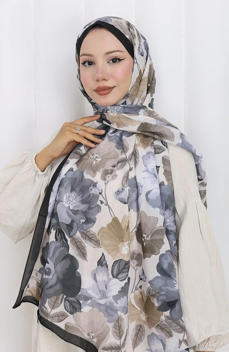 Desenli Pamuklu Koza Şal 70323-12 Siyah Vizon