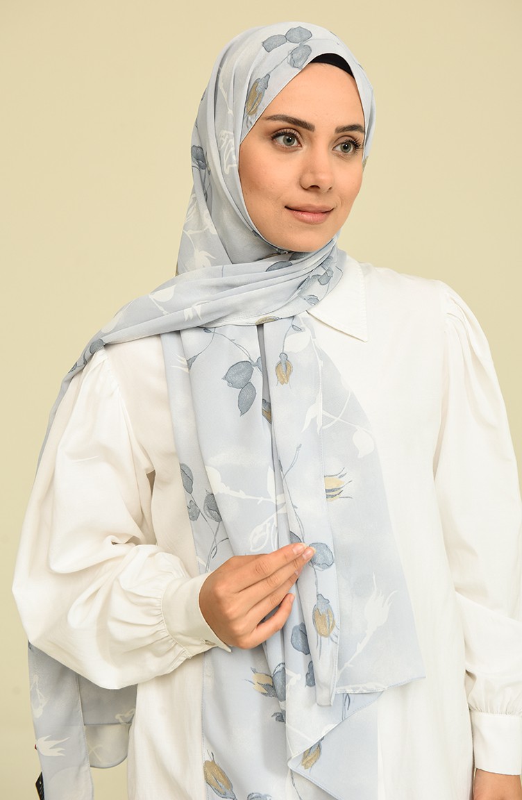 Desenli Şifon Şal 8117466-01 Buz Mavisi