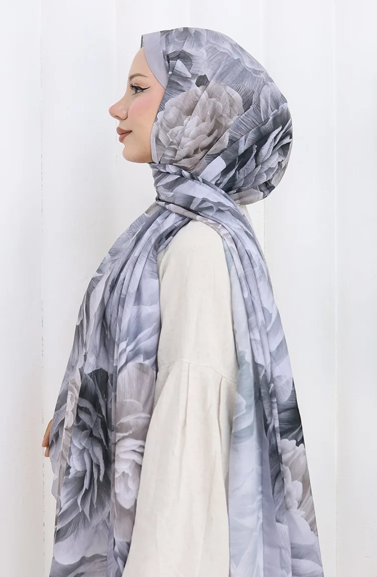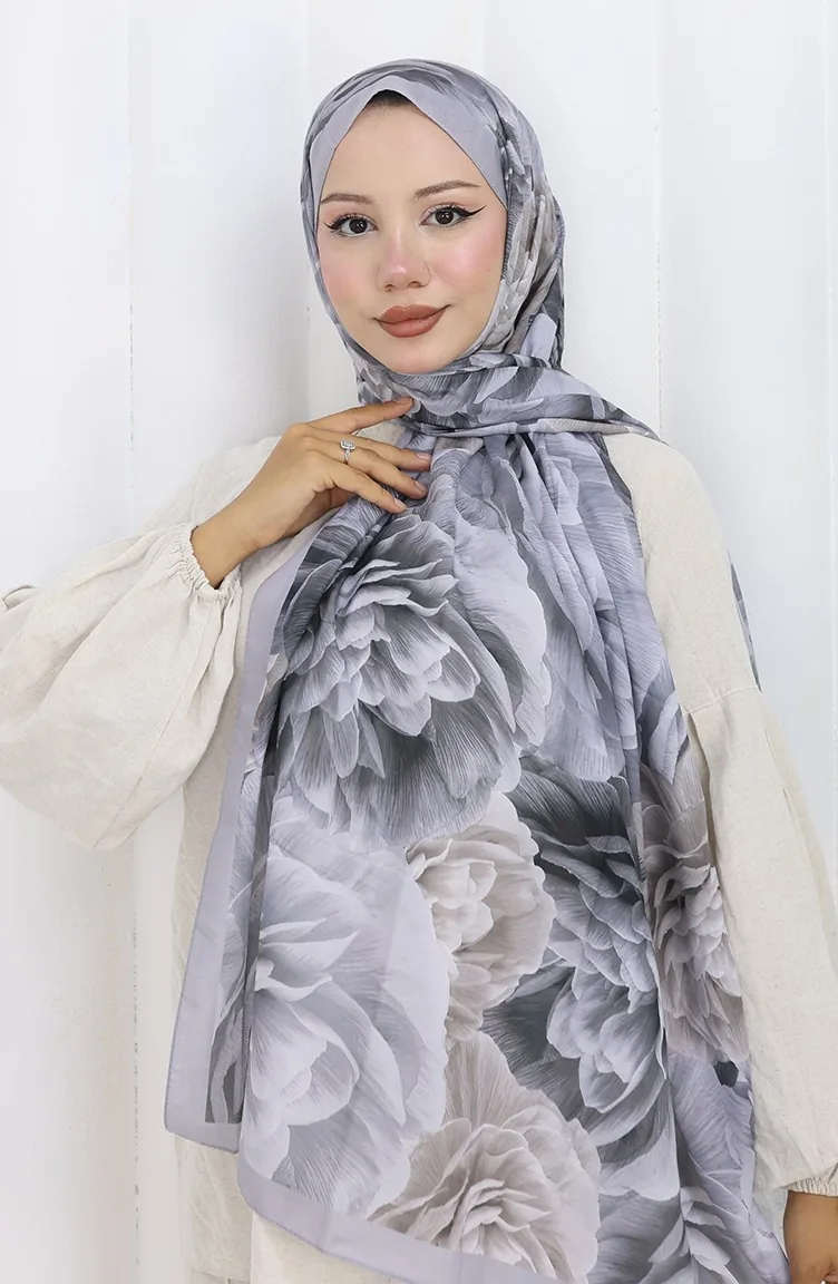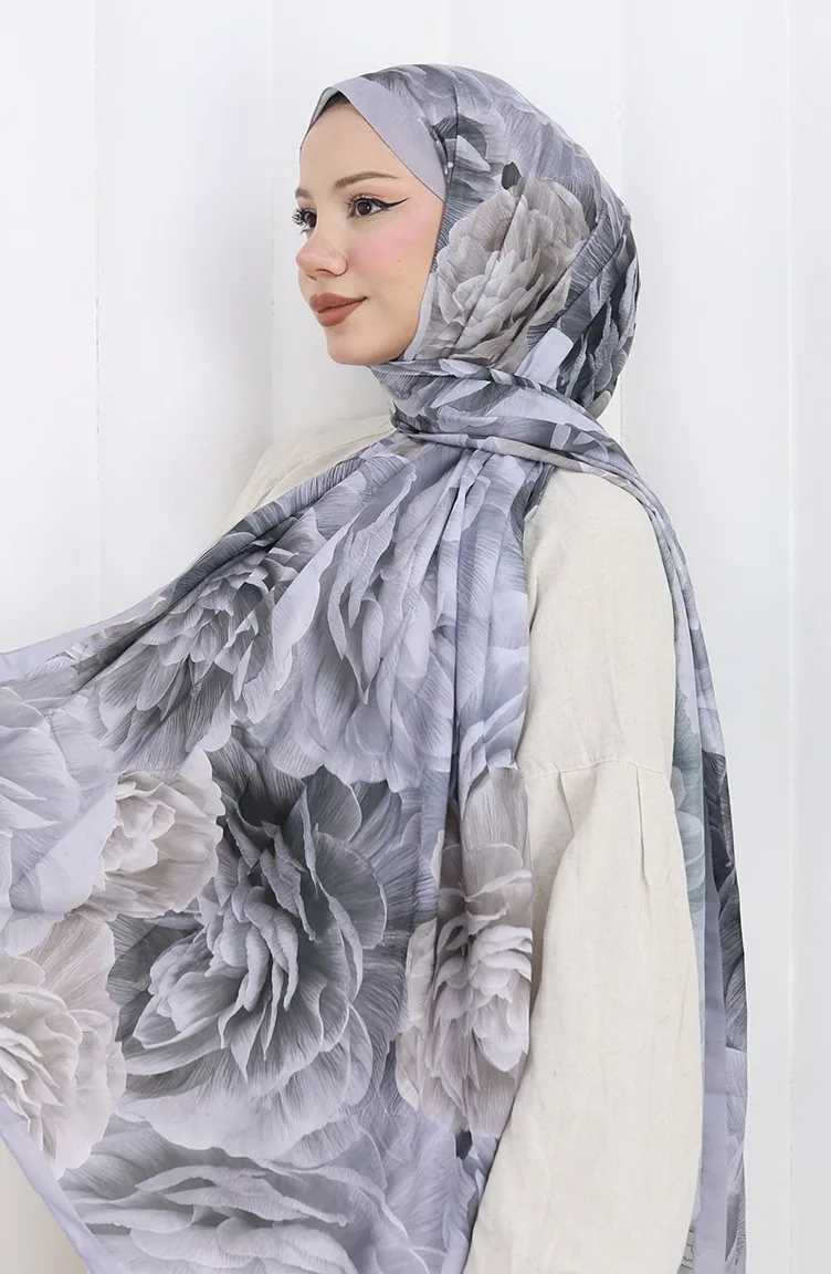 Pamuklu Desenli Koza Şal 70322-03 Gümüş Gri