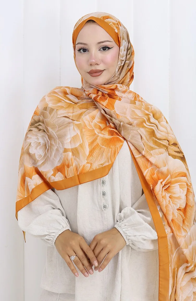 Pamuklu Desenli Koza Şal 70322-07 Taba