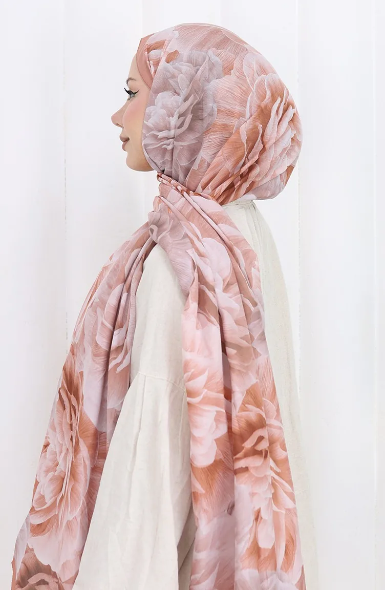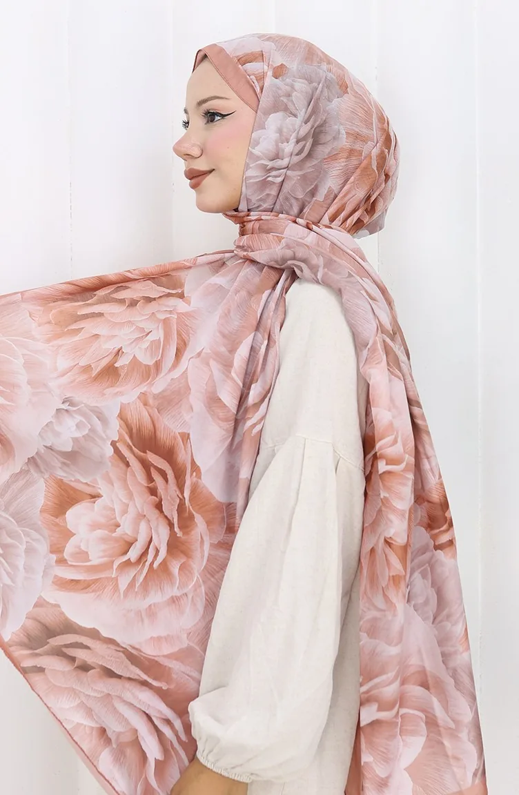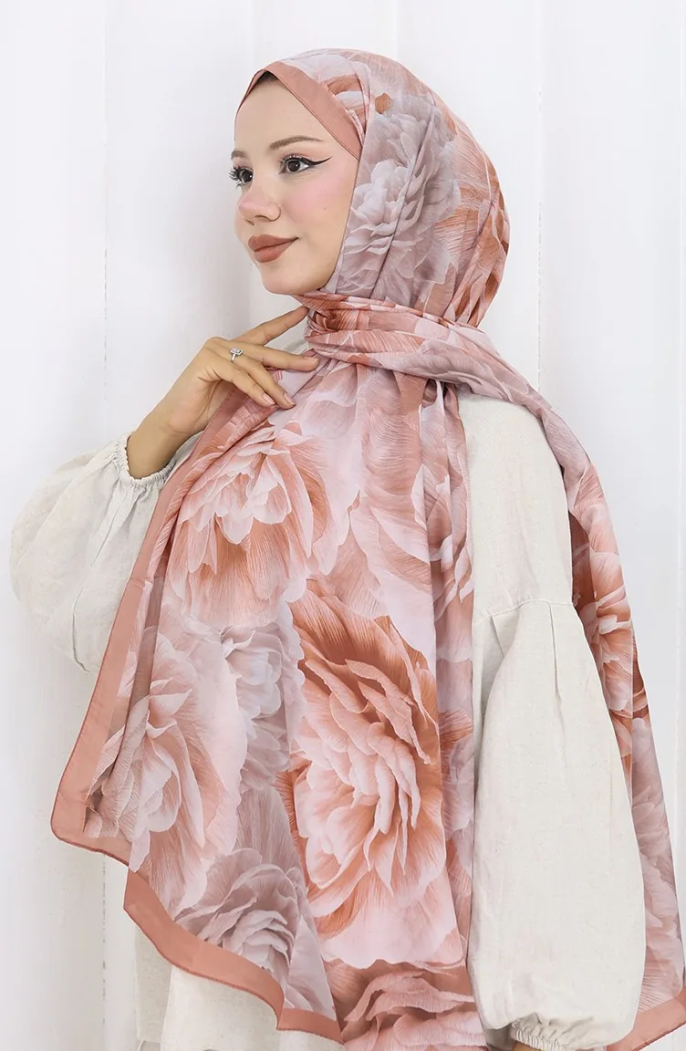 Pamuklu Desenli Koza Şal 70322-10 Soğan Kabuğu