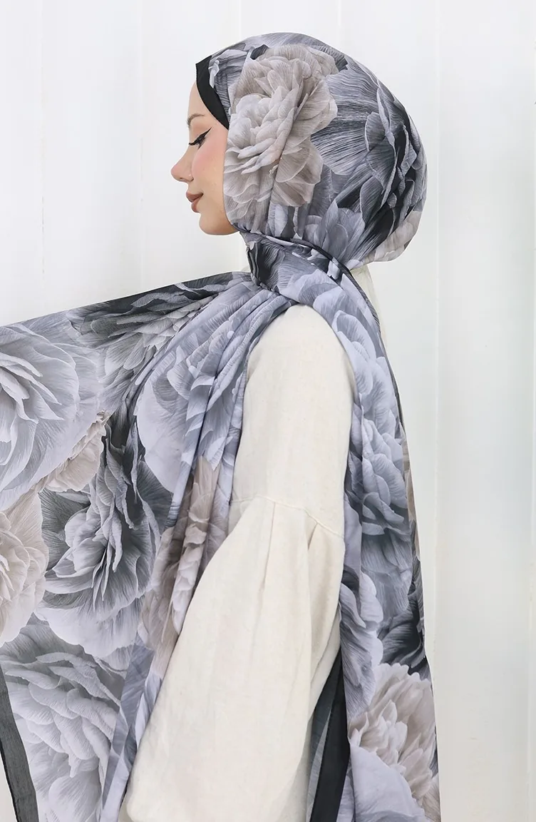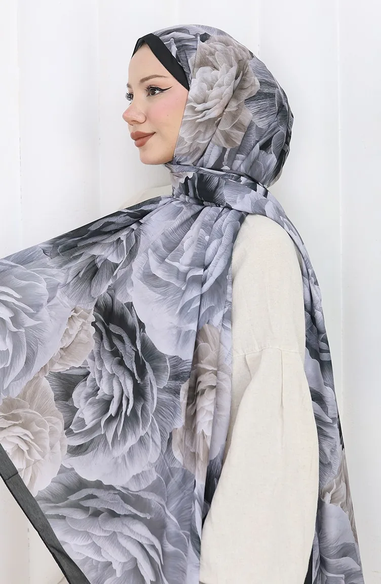 Pamuklu Desenli Koza Şal 70322-13 Siyah