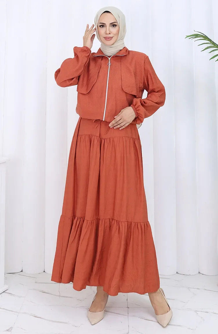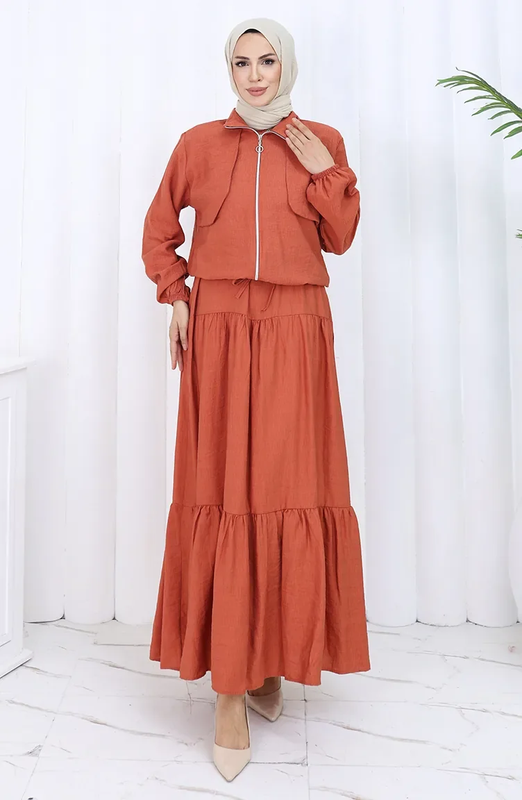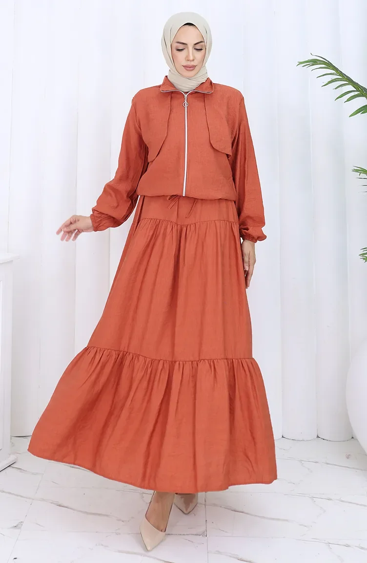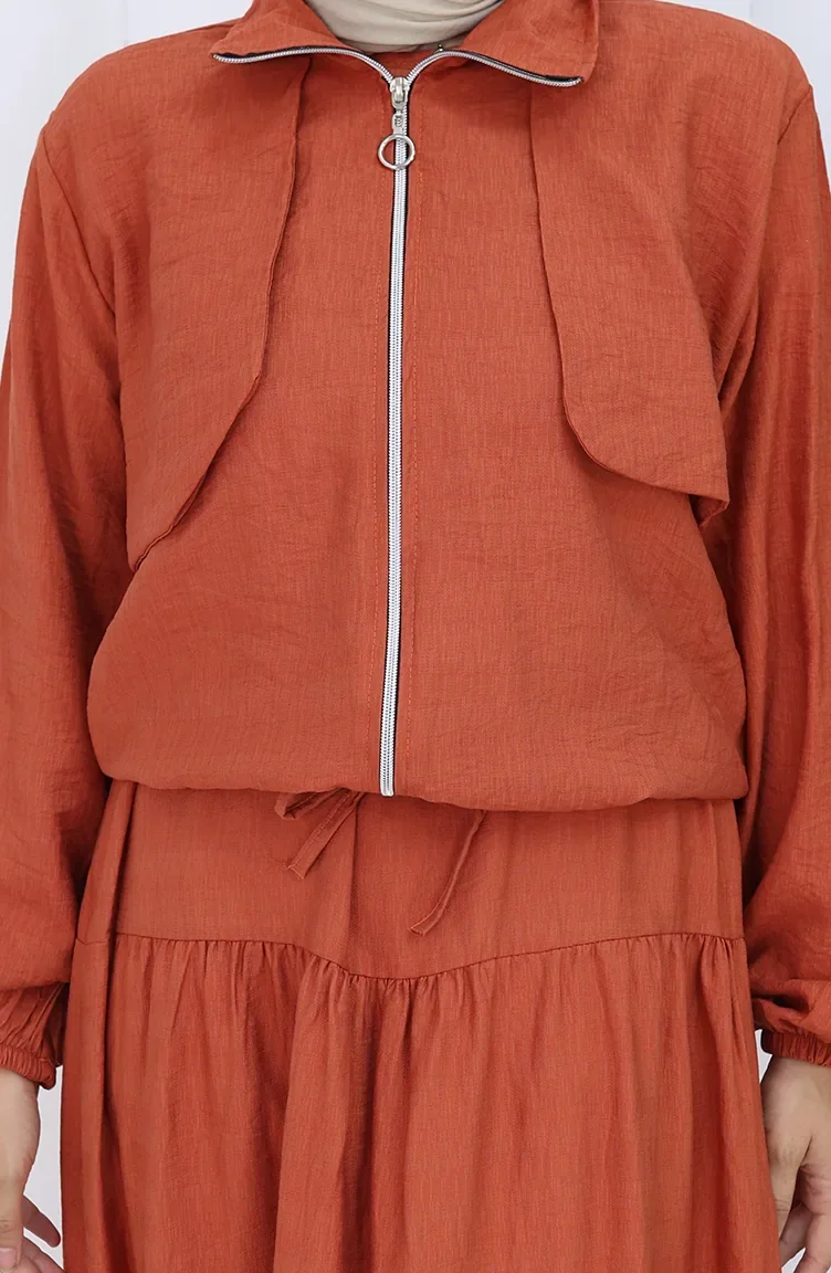 Kolu Lastikli Fermuarlı İkili Takım 0129-09 Kiremit