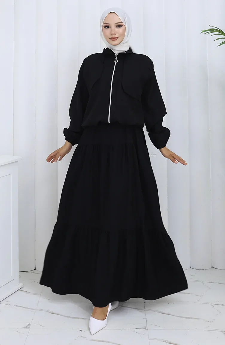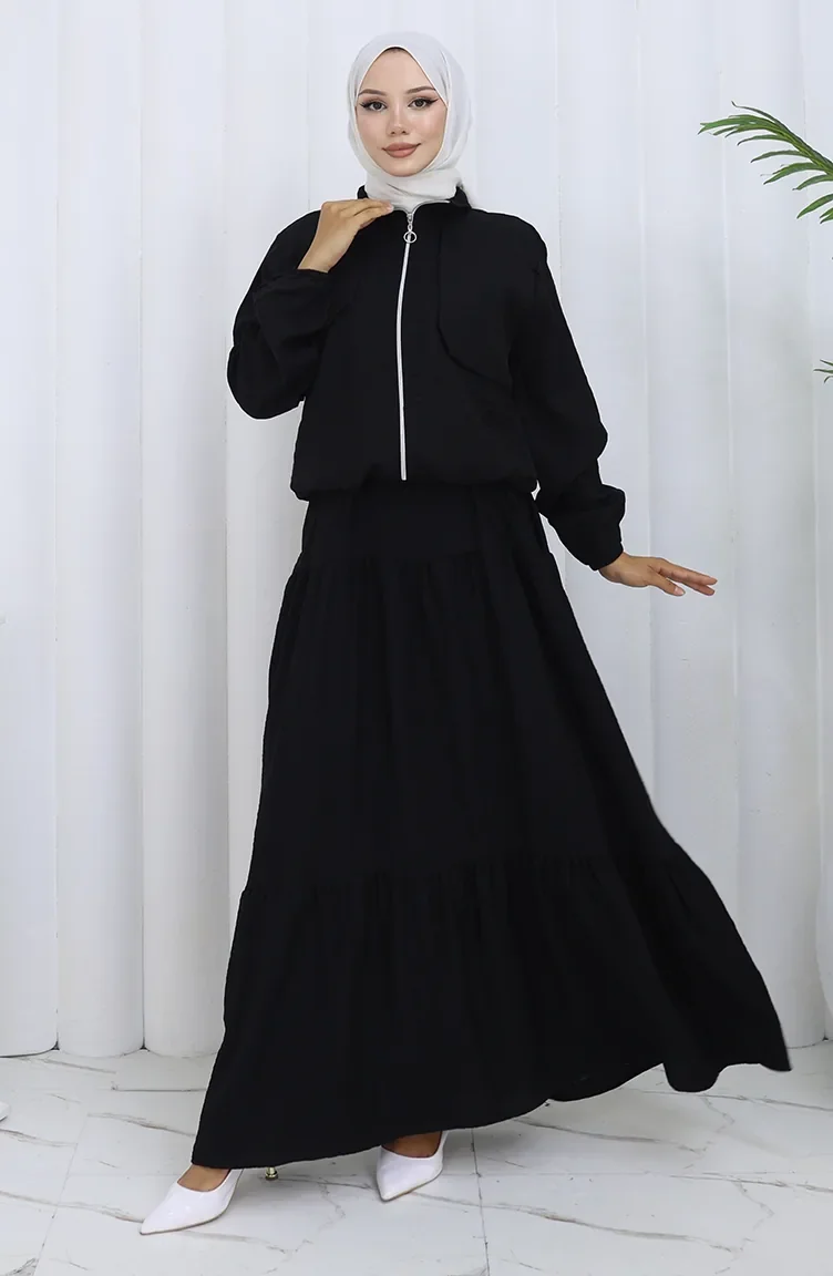 Kolu Lastikli Fermuarlı İkili Takım 0129-15 Siyah