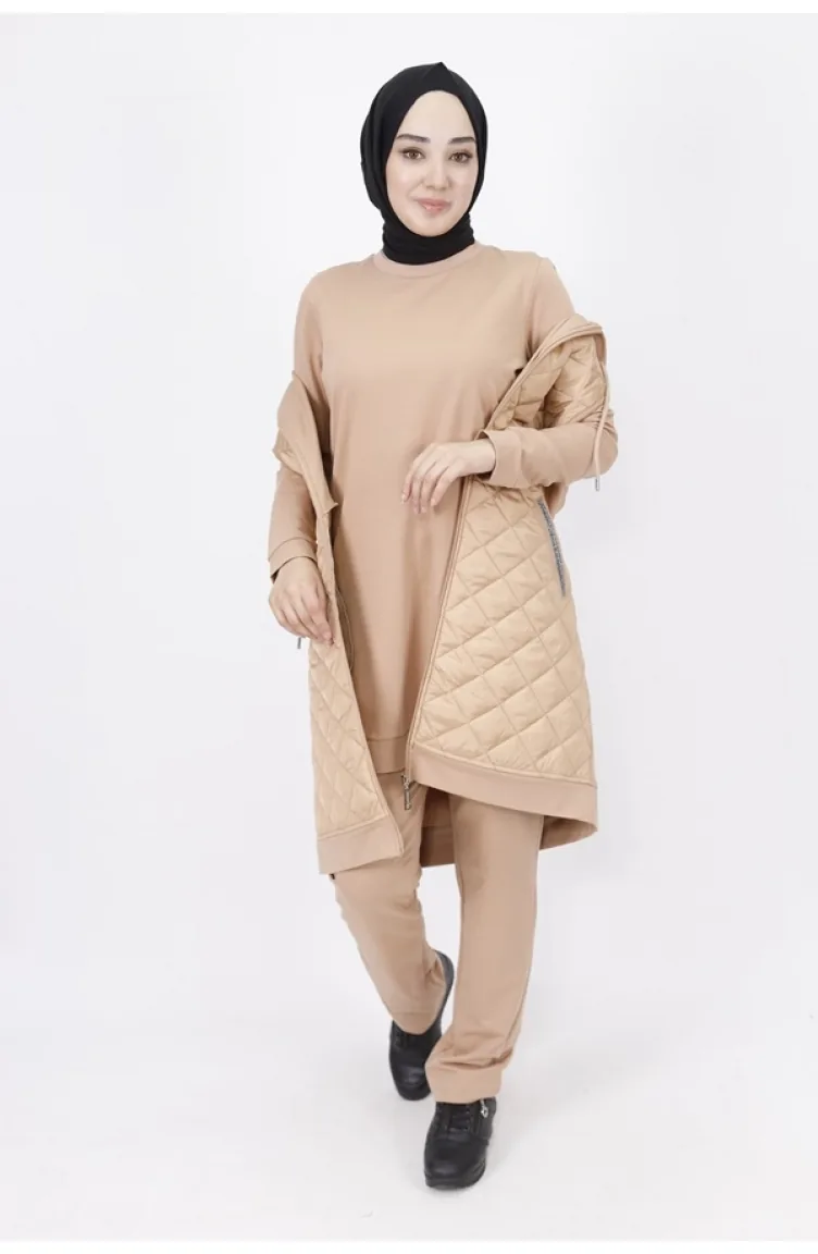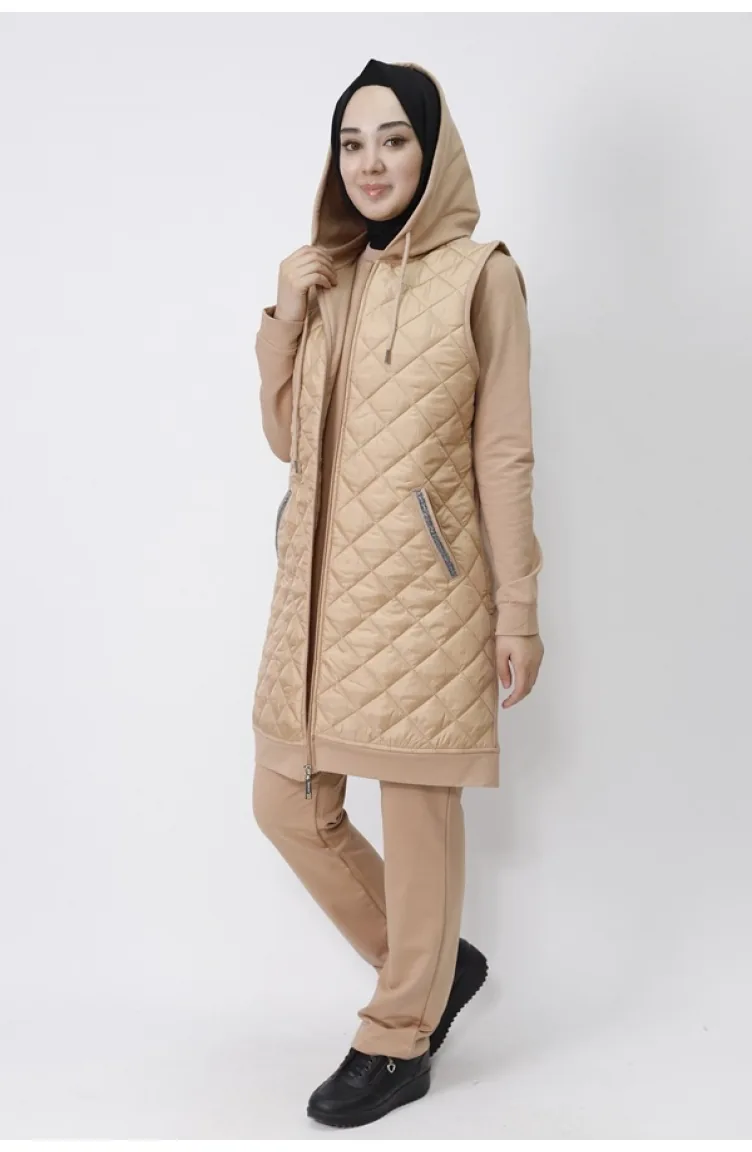 2 İp Kumaş Yelekli 3lü Takım 70060-01 Camel