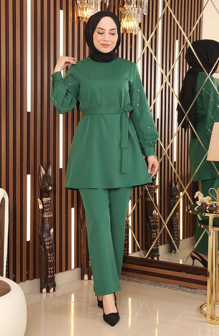 Zümrüt Yeşili renktedir. Polyester kumaş. Sade. 4 Mevsim tercih edebilirsiniz. Büyük beden seçeneği mevcuttur.