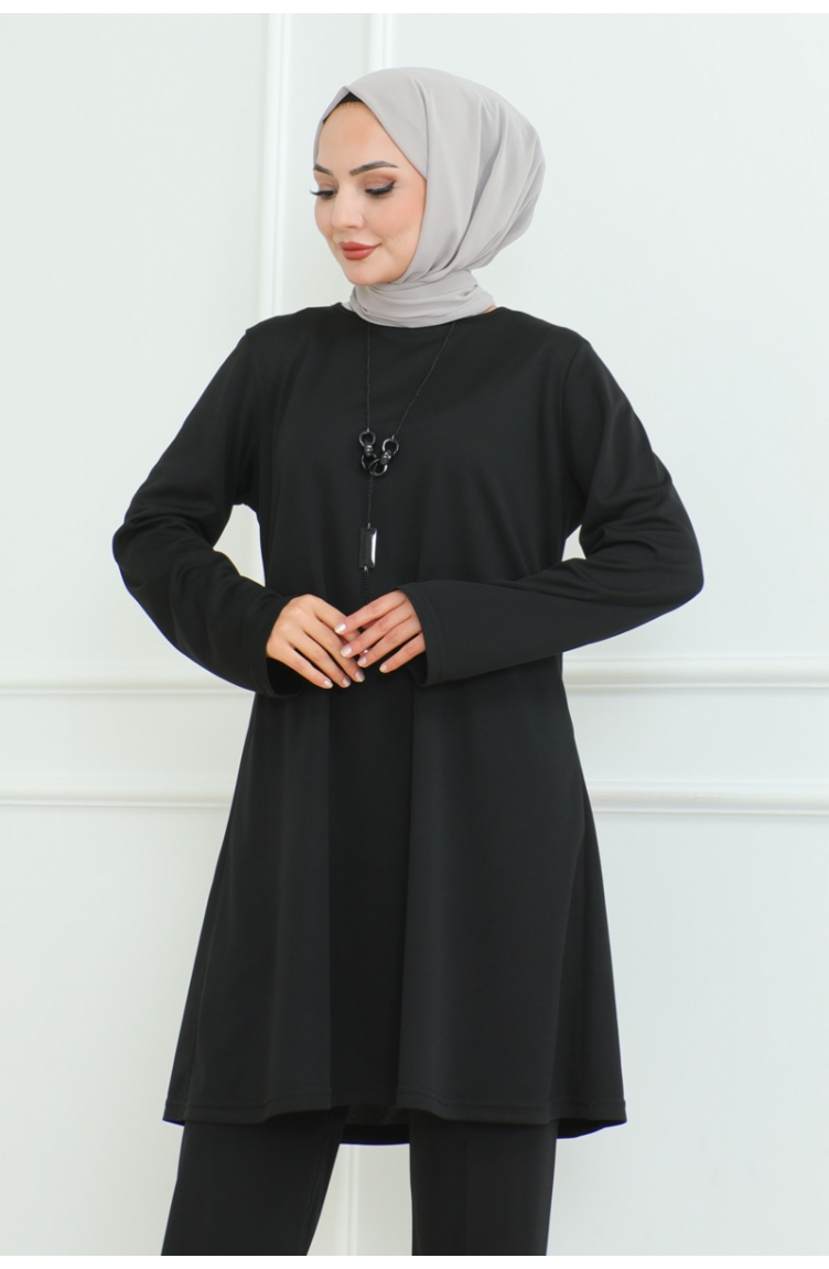 Ürünümüz Pamuk Polyester kumaştan üretilmiştir. Terletme yapmaz, 42 - 52 beden aralığı mevcuttur, bedenler geniş tutulmuştur. Ürünümüz duruşu ve yumuşak kumaşı ile çok tercih edilen modeller arasında yer almaktadır. Yeni sezon tesettür moda ürünüdür.