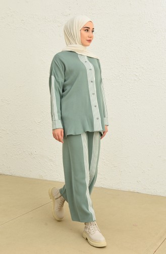Triko Çizgili Tunik Pantolon İkili Takım 0565-10 Çağla Yeşili