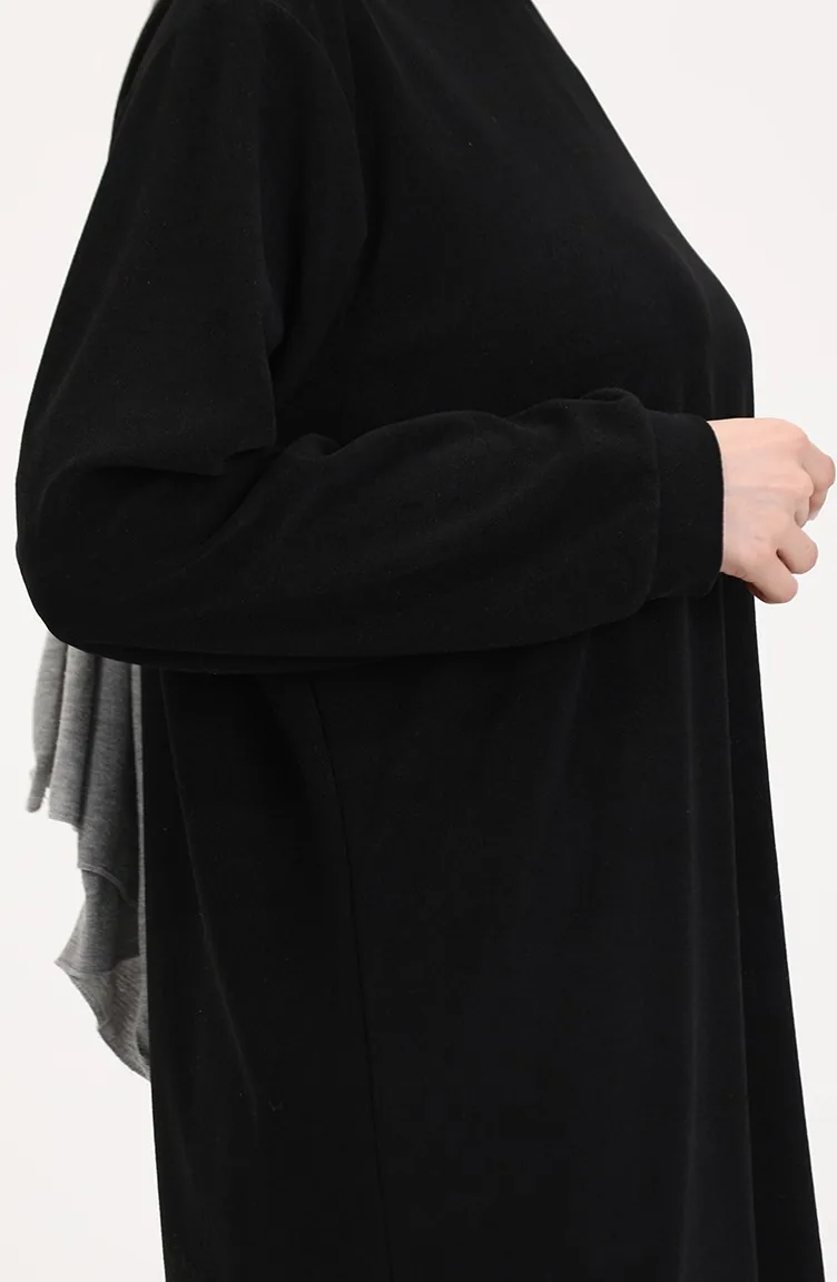 Siyah renktedir. Pamuk dokuma kumaş. Sade. Tunik. Sıfır yaka detayı ile rahat kullanıma sahiptir. 4 Mevsim tercih edebilirsiniz. Büyük beden seçeneği mevcuttur.