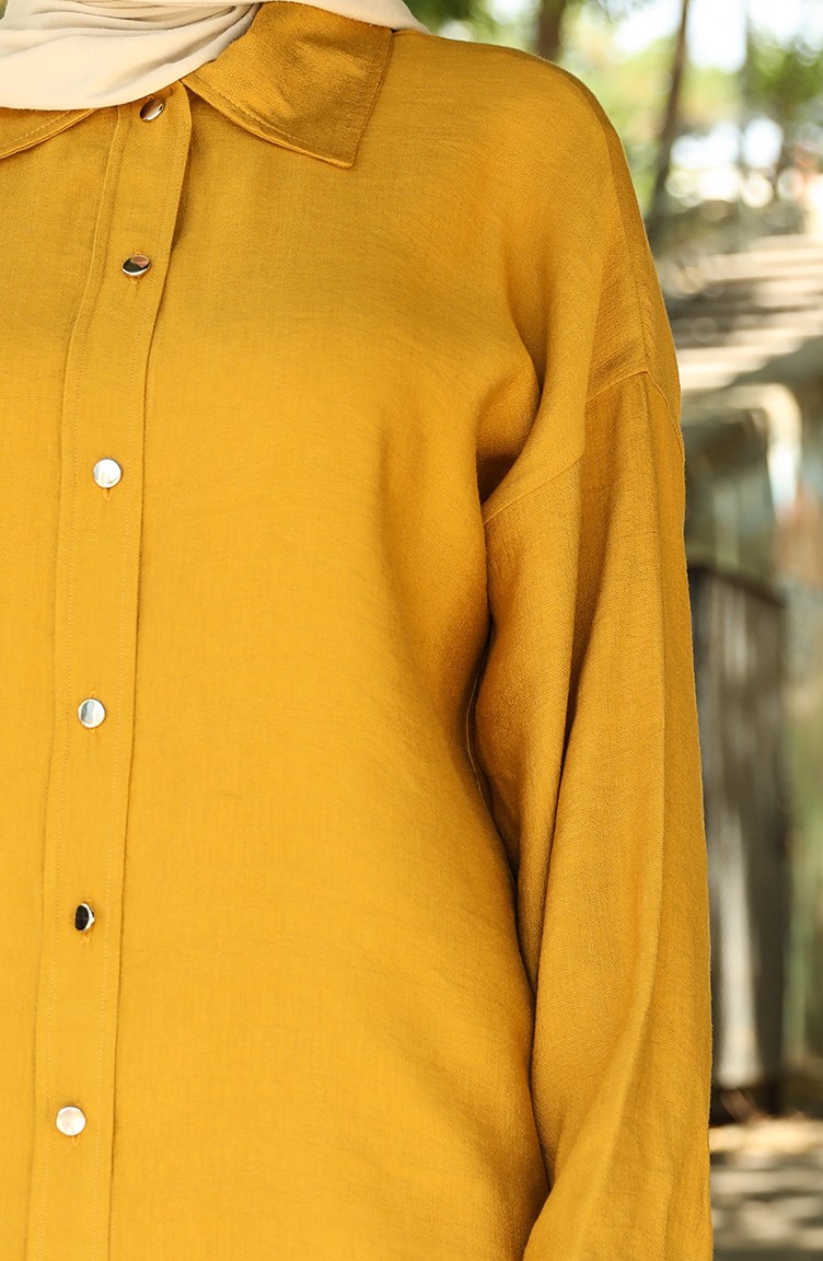 Hardal renktedir. Pamuk dokuma kumaş. Sade. Astarsız. Uzun kolludur. Gömlek yaka detayı ile kullanışlı modeldir. Yazlık. Standart.
