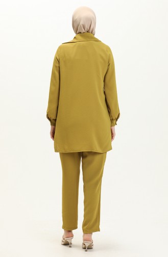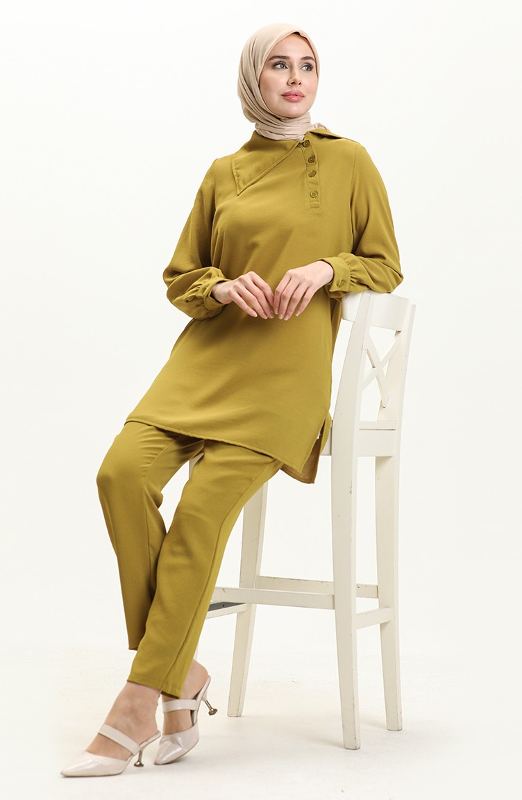 Yaka Detaylı Tunik Pantolon İkili Takım 70038-04 Yağ Yeşili